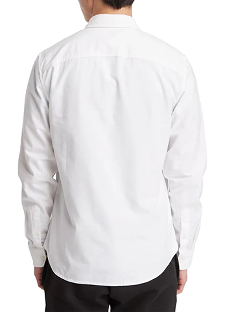 A wardrobe essential that marries tailored modern styling with eco‑conscious craftsmanship. This slim‑fit, long‑sleeve Oxford shirt is cut from regeneratively grown cotton for breathable all‑day comfort, finished with subtle branding and careful detailing.