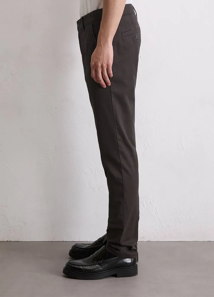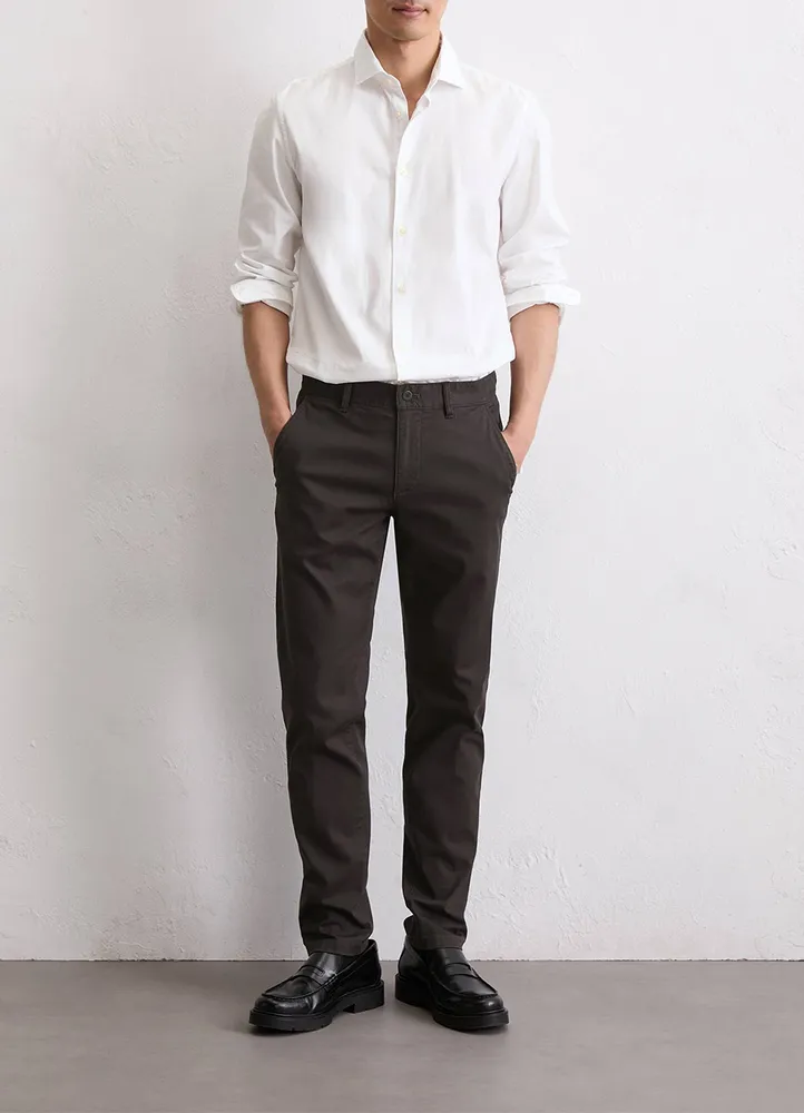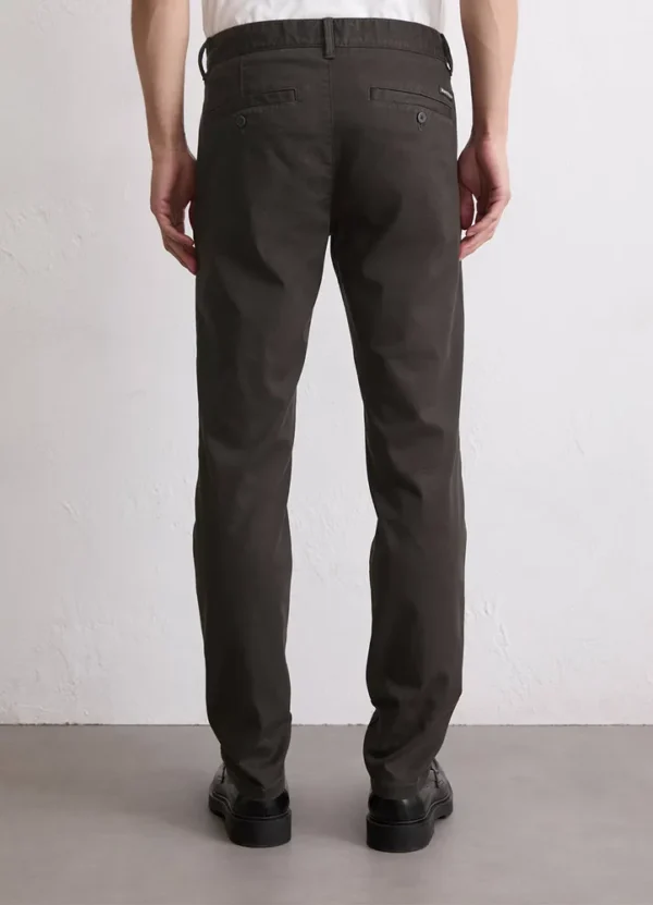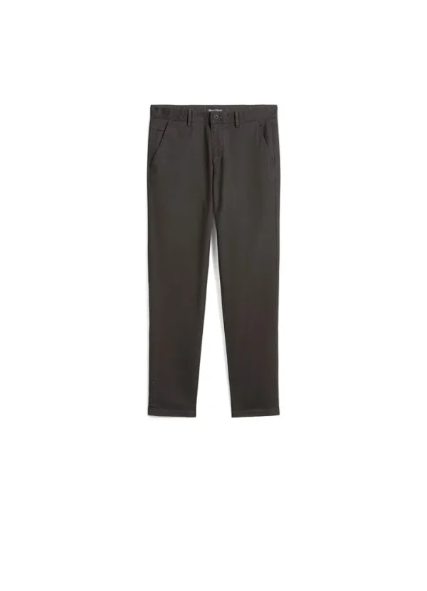 Chino Pants. Chino model Stig shaped made from an organic cotton blend. These fabric trousers – model Stig shaped – impress with their clean look and minimalist, straightforward design. Cut in a shaped fit, the leg is tapered to a regular length – ideal for the trendy carded style. Typical details such as slanted slit pockets, a coin pocket and piped back pockets emphasize the chino look. The wide waistband with belt loops ensures comfort and functionality. Made from stretchy organic cotton dobby fabric with a gently peached surface, these trousers have a pleasantly soft yet robust feel. They can be combined in a variety of ways – whether with a long sleeve and trainers or a shirt and leather lace-ups. 98% Cotton, 2% Elastane. |