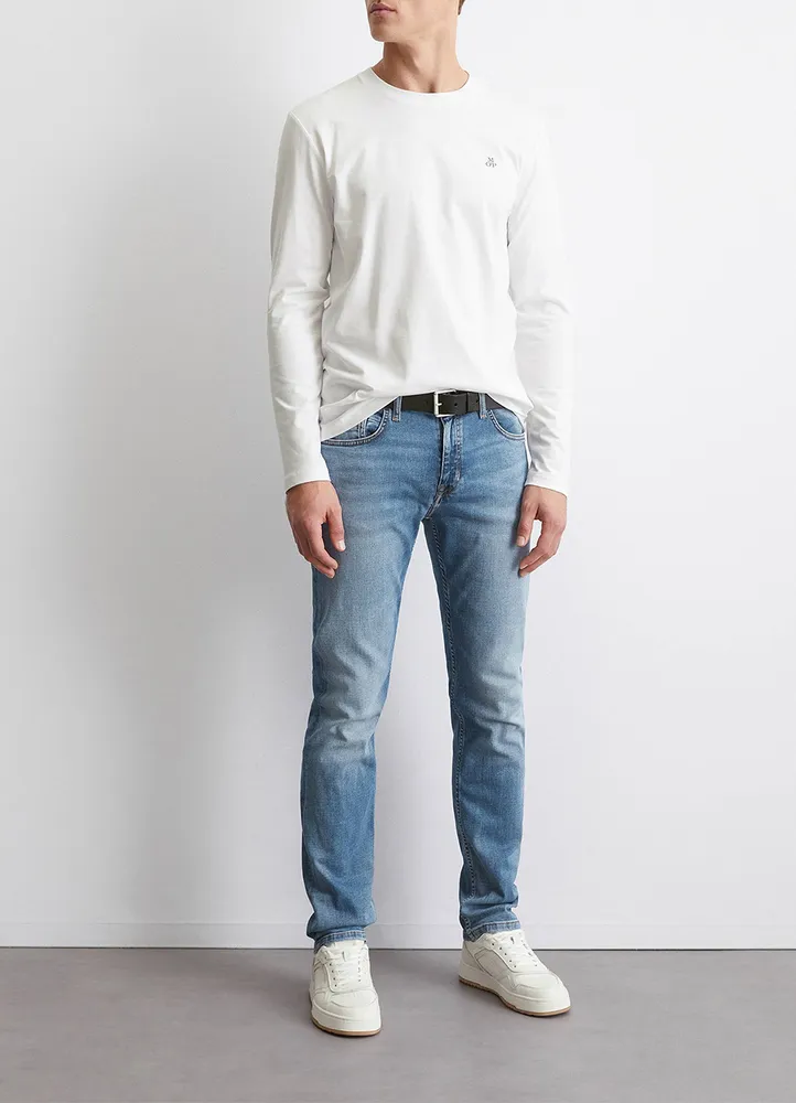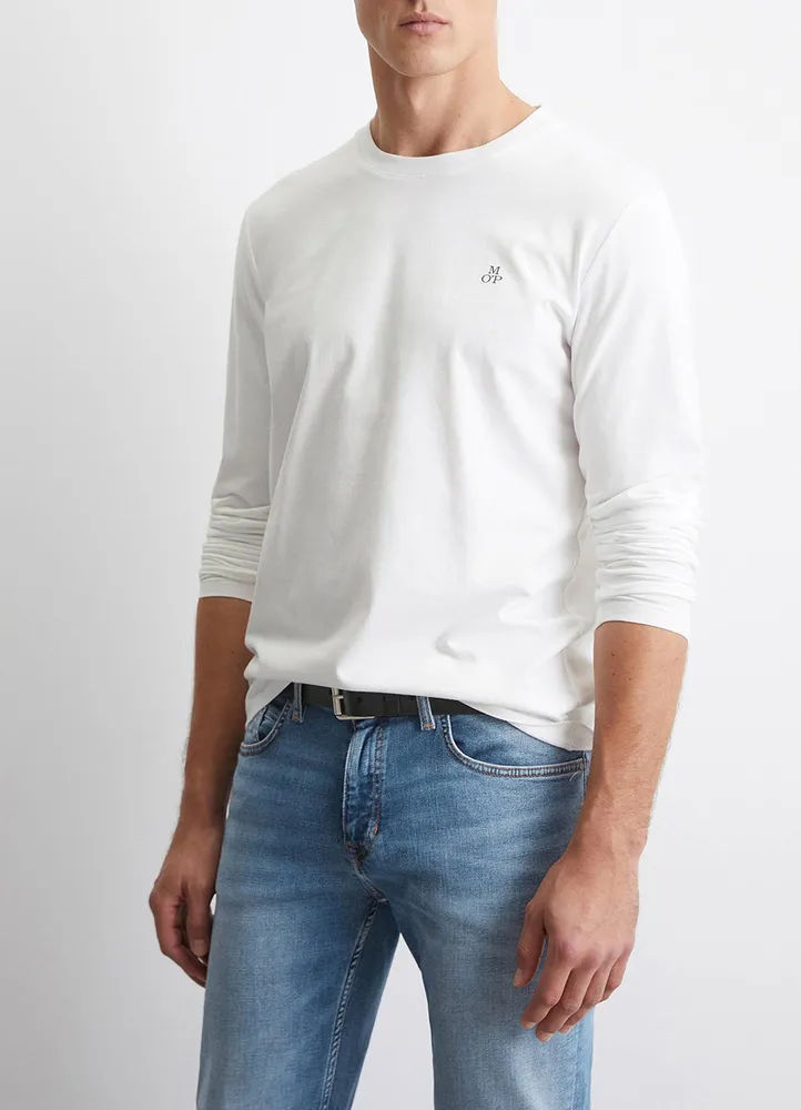 Timeless basic in premium quality: high-quality long sleeve top made from certified organic cotton. Masculine shaped fit with a ribbed round neckline, long sleeves and a straight hem. Discreet logo on the chest.