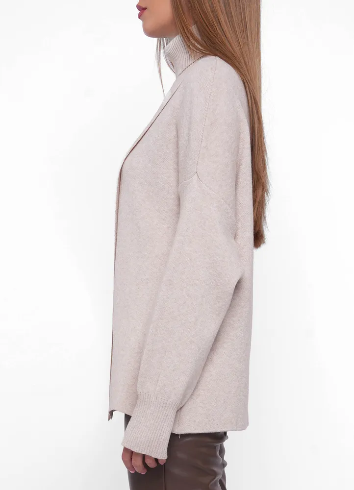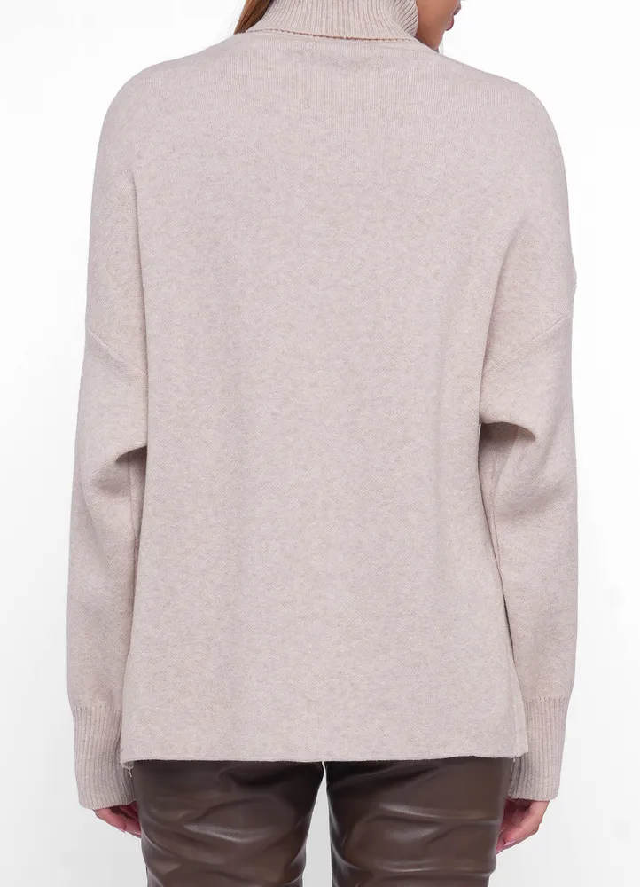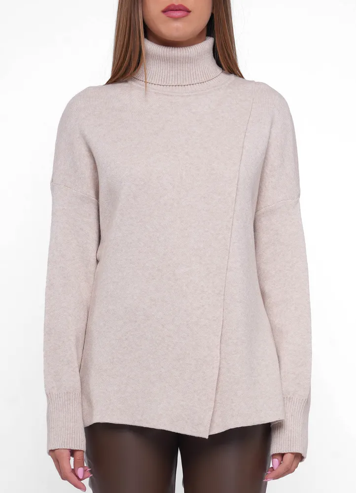 Turtle ribbed neck knitwear with dropped shoulders & front detail.