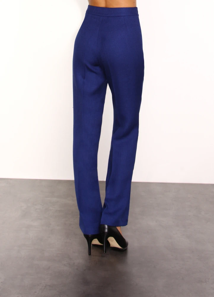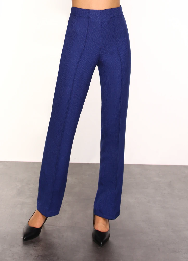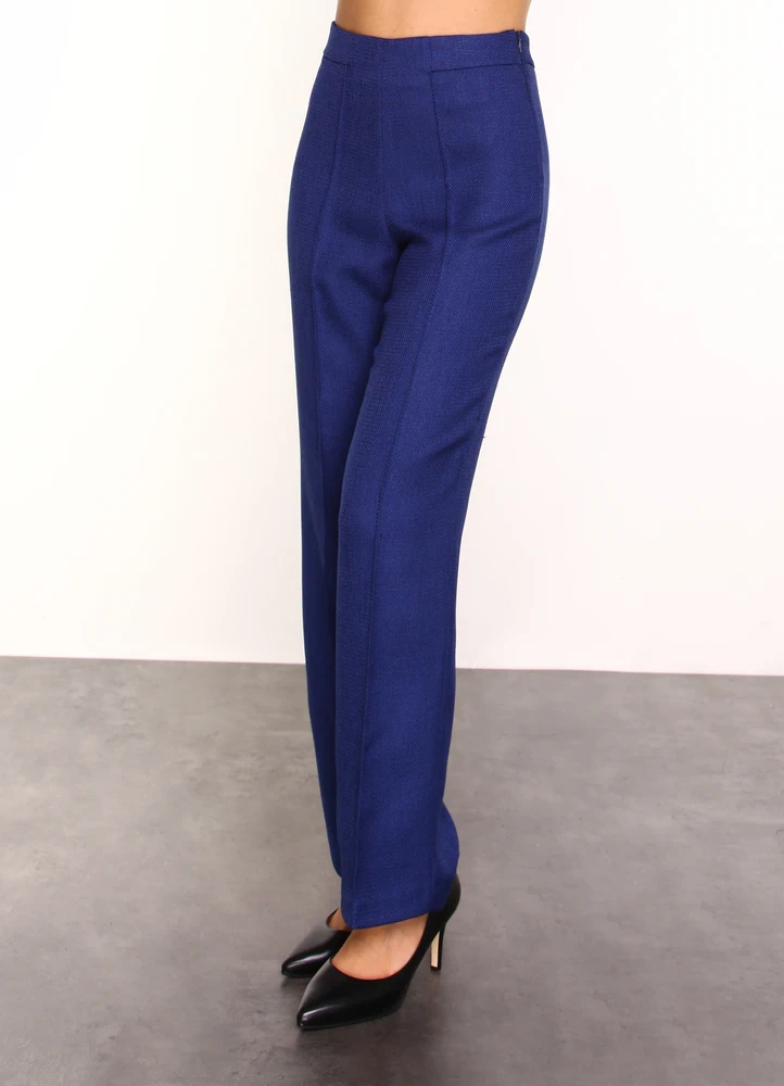 Straight leg dress pant in special fabric featuring side invisible zip.