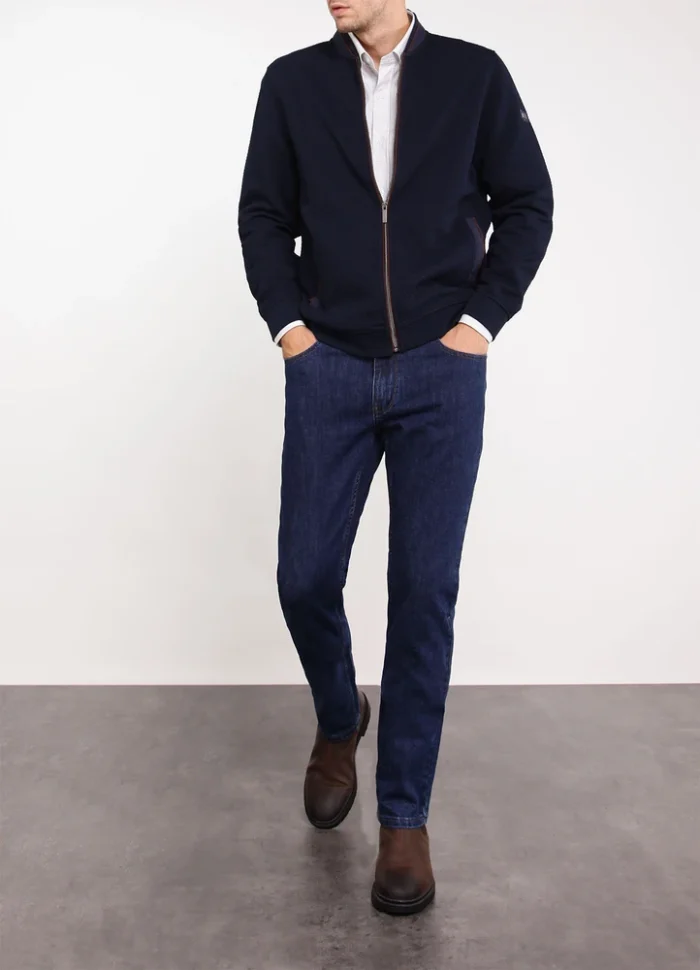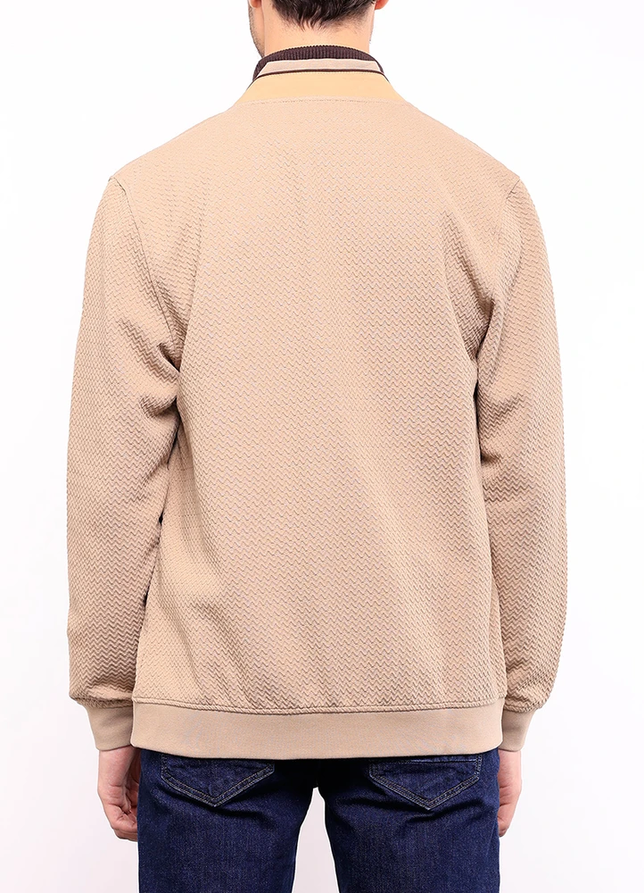 Structured tonal chevron full zip baseball collar sweatshirt with suede contrast lining and zipped pockets.