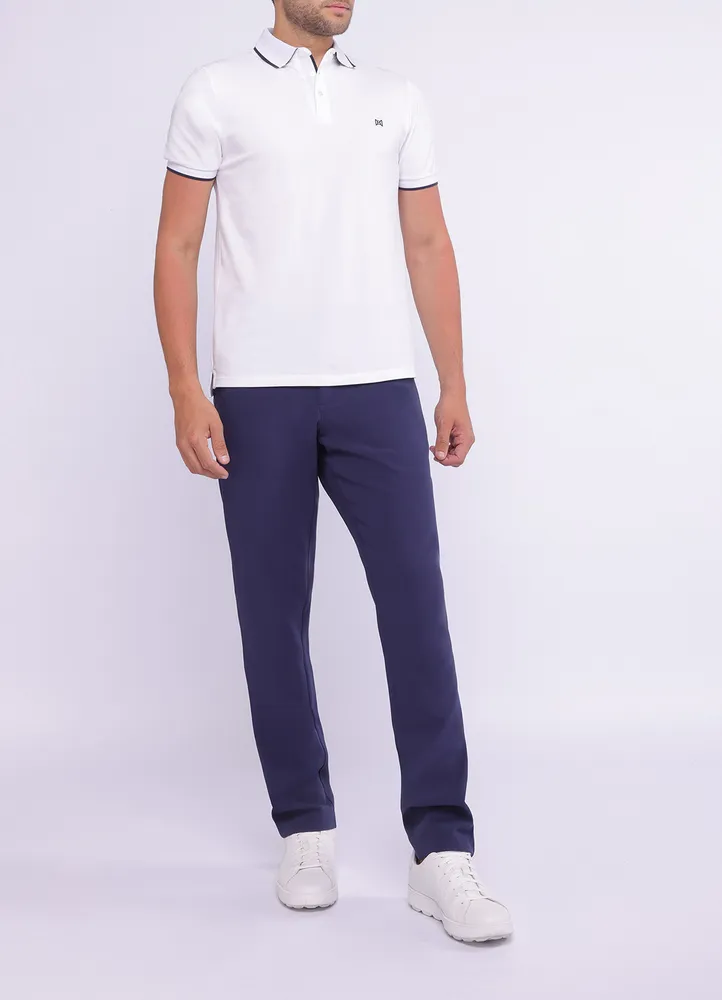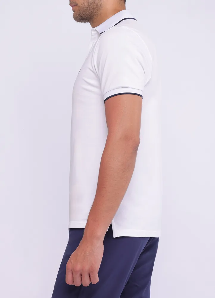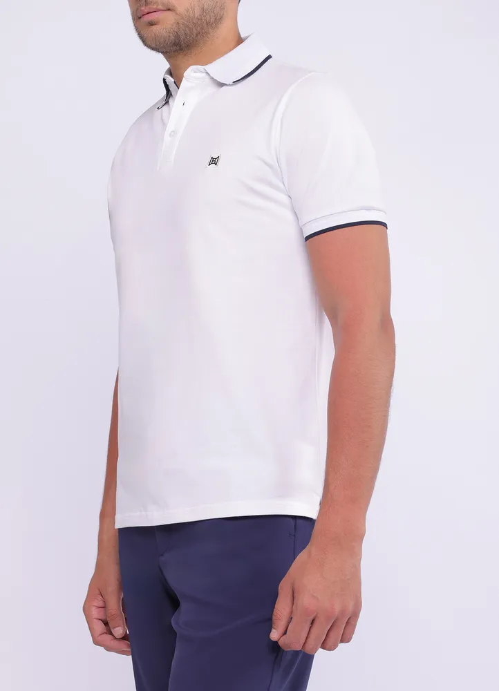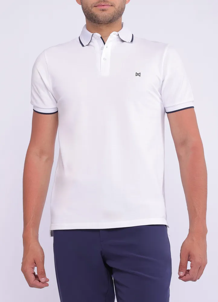 Brick pique poloshirt with tipped oxford collar and sleeves featuring Maison Brown small embroidery on chest.