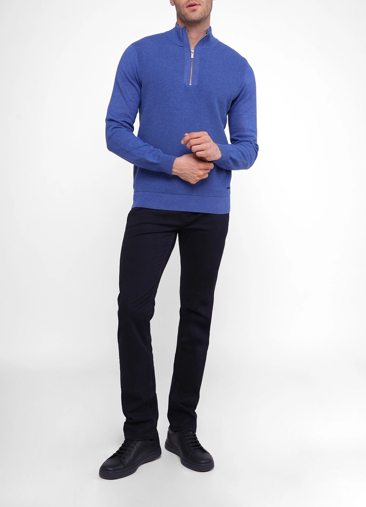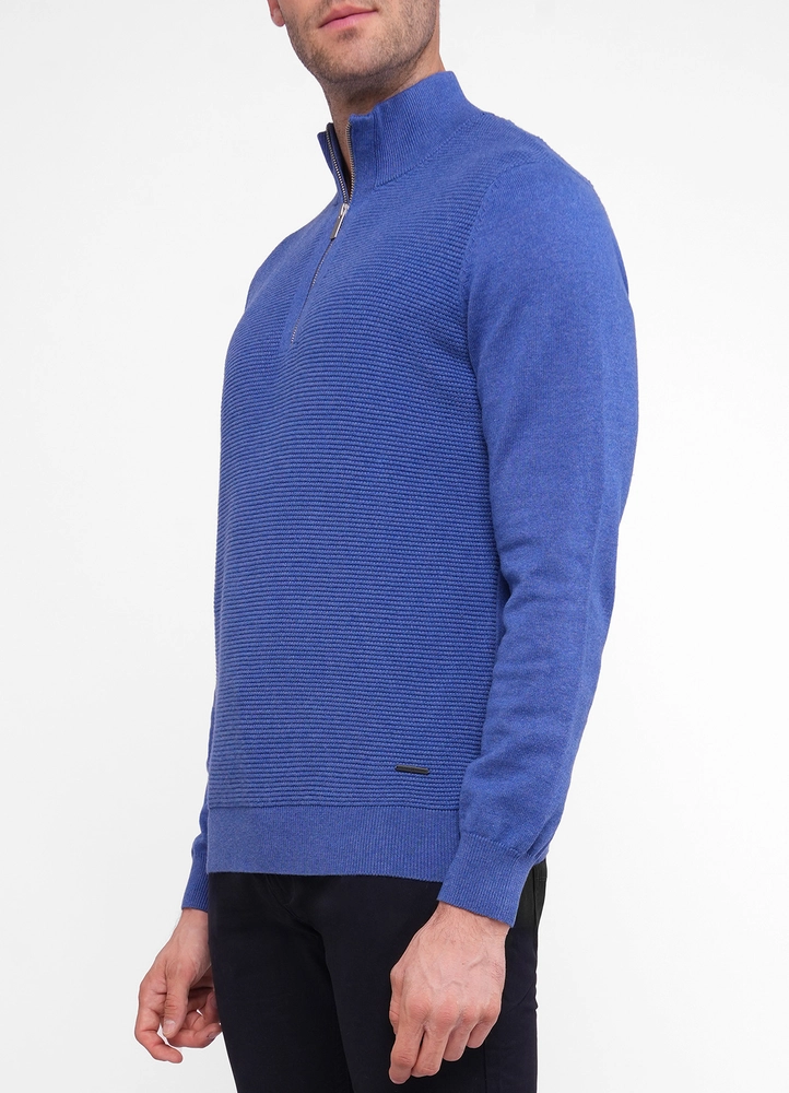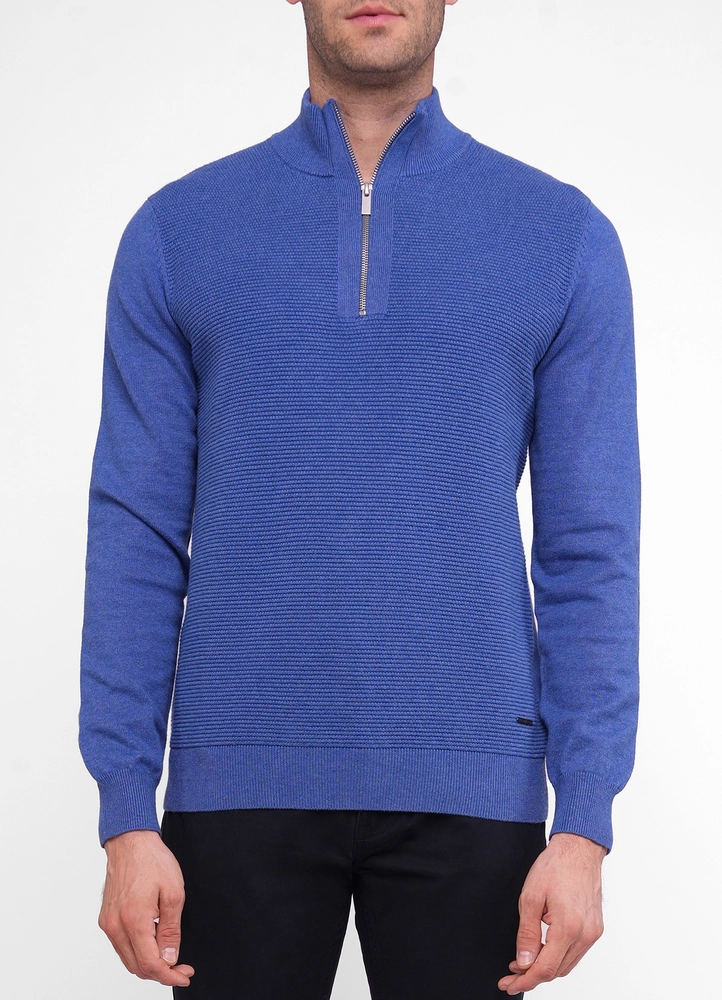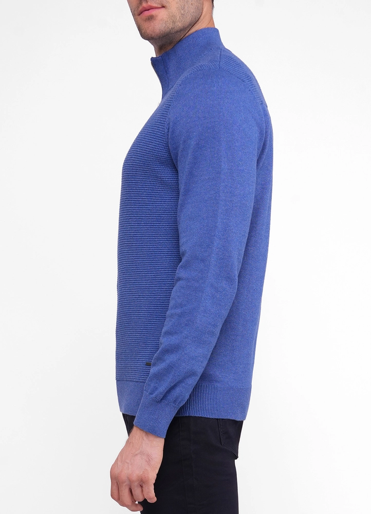 Harvey structured front half zip sweater with flat knit sleeves and back.