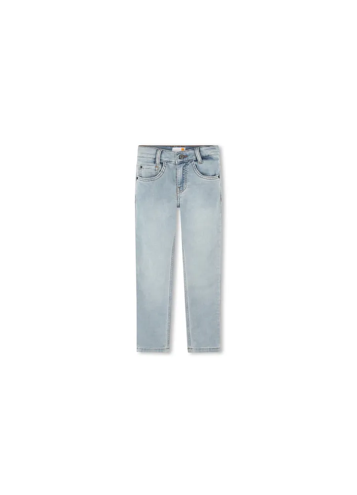 These Timberland jeans are an everyday staple. They come in a very modern, slim fit. The waist is adjustable up to age 10, allowing them to be tailored to fit your child’s body shape.