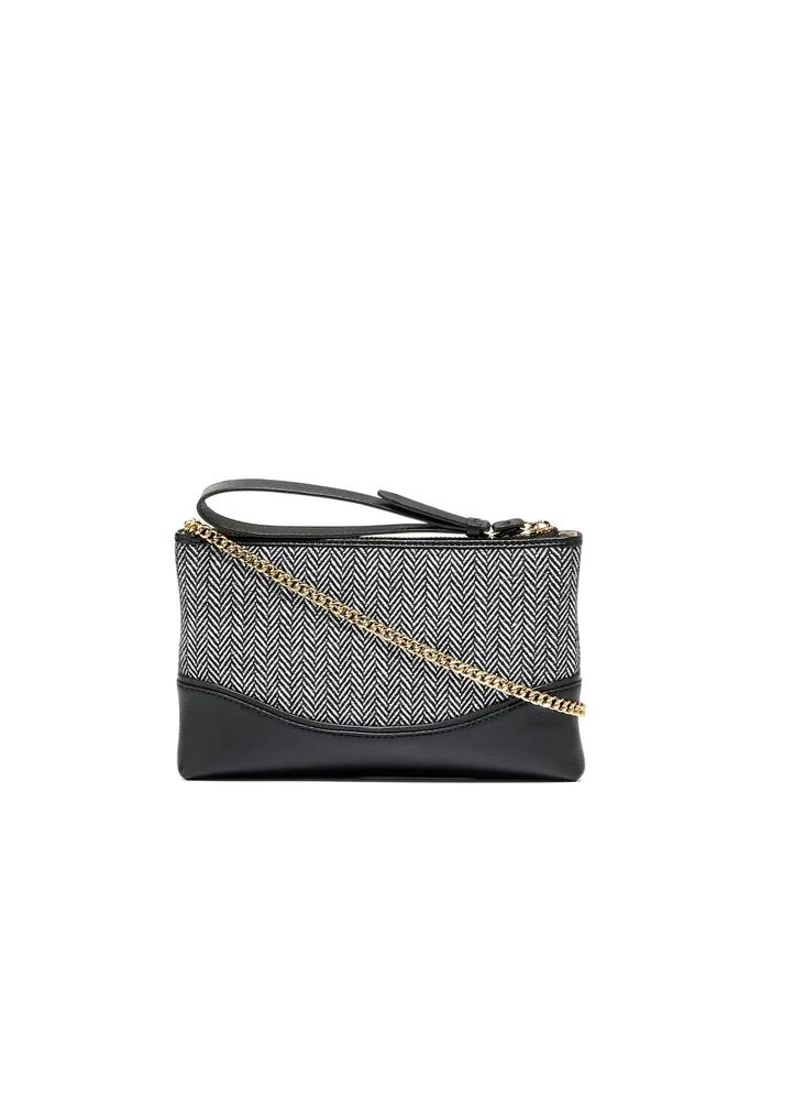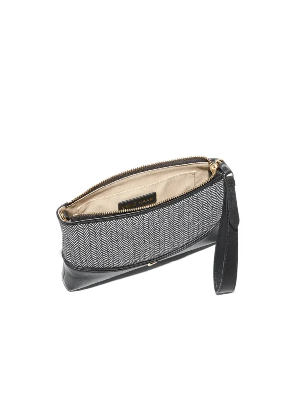It has a removable chain strap and can be used as a wristlet or crossbody.