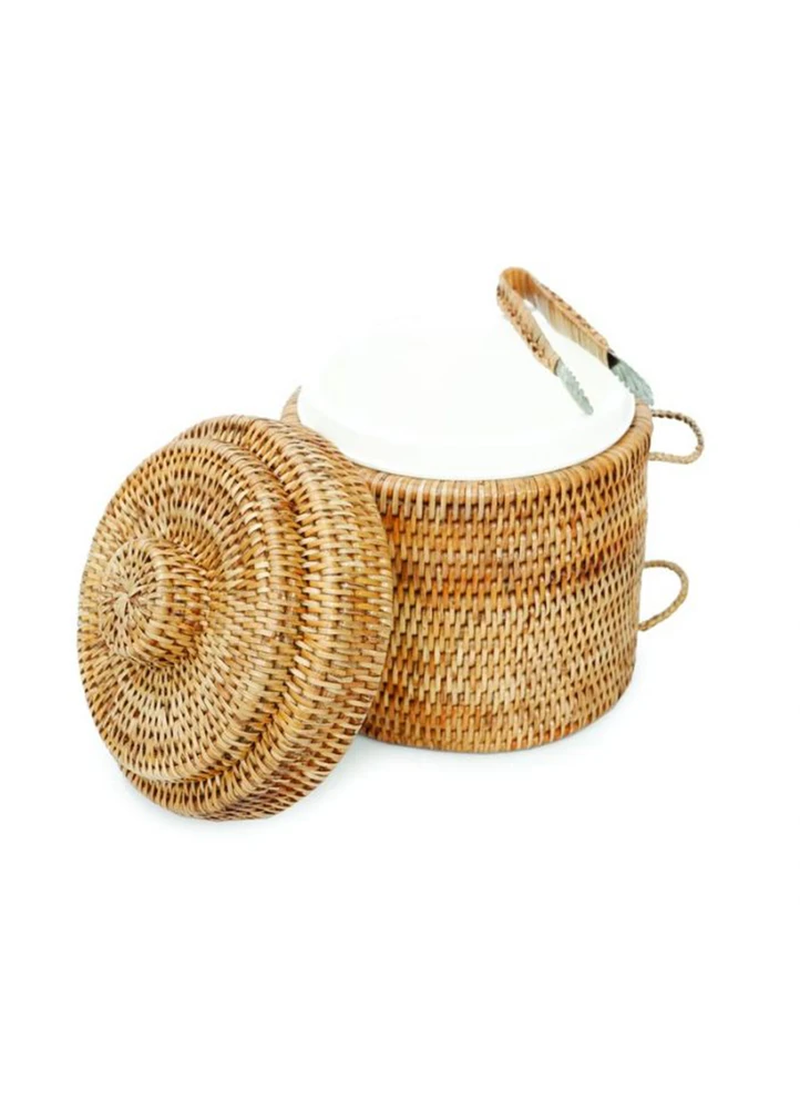 Ice bucket, rattan, with tongs, d: 20 x 21 cm.