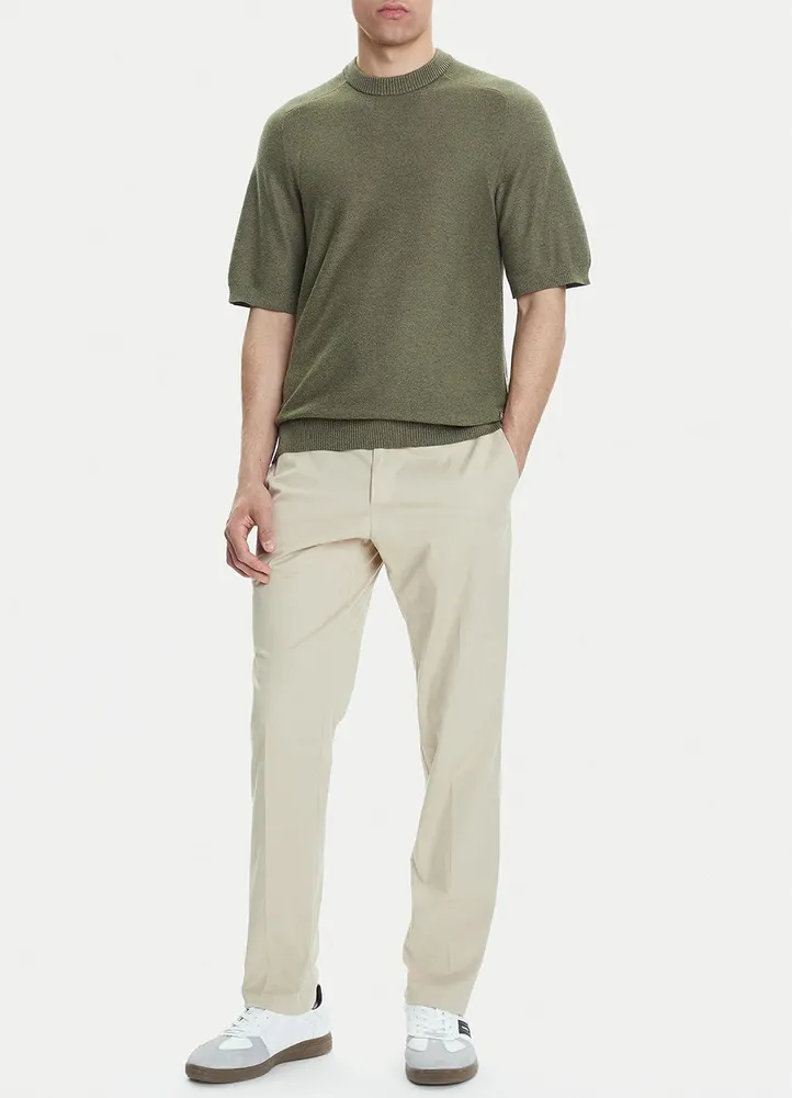 Kencel cotton mix knitted short sleeve crew neck sweater.