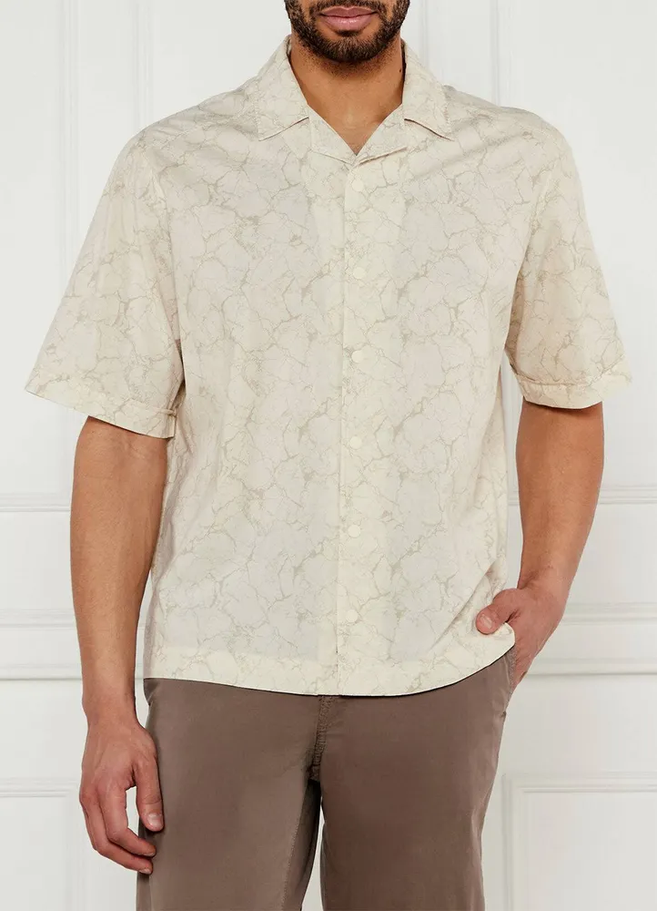 Lapisy patterned relaxed fit short sleeve shirt with snap buttons and pyjama collar.