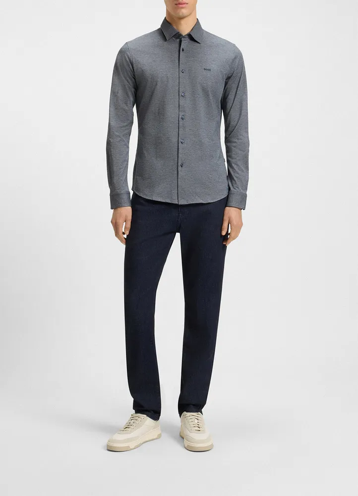 A clean and contemporary shirt in a defined fit by BOSS. This casual piece is crafted in melange piqué jersey with an embroidered logo.