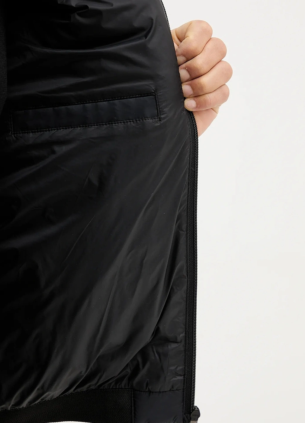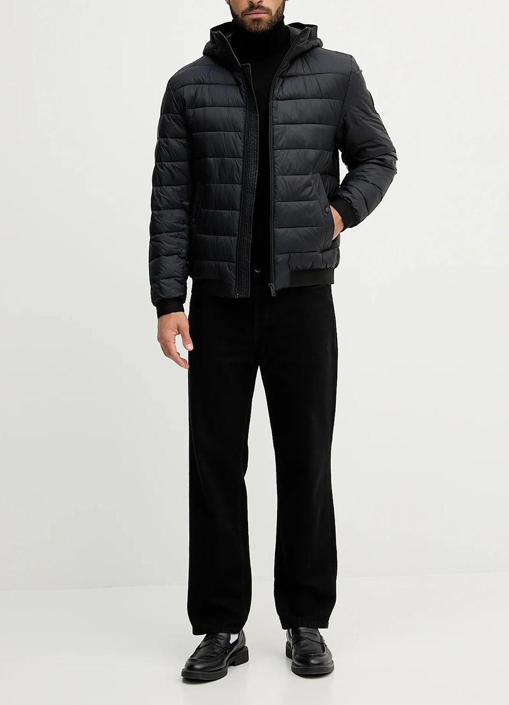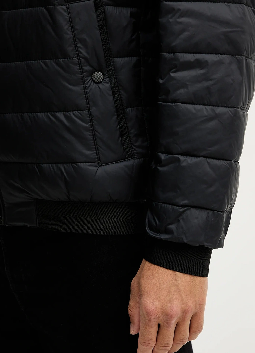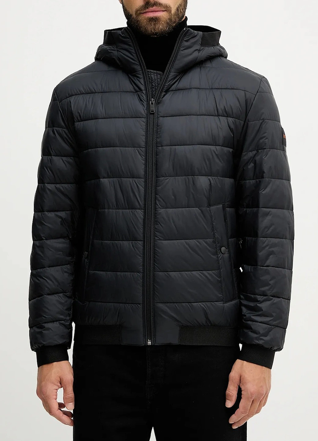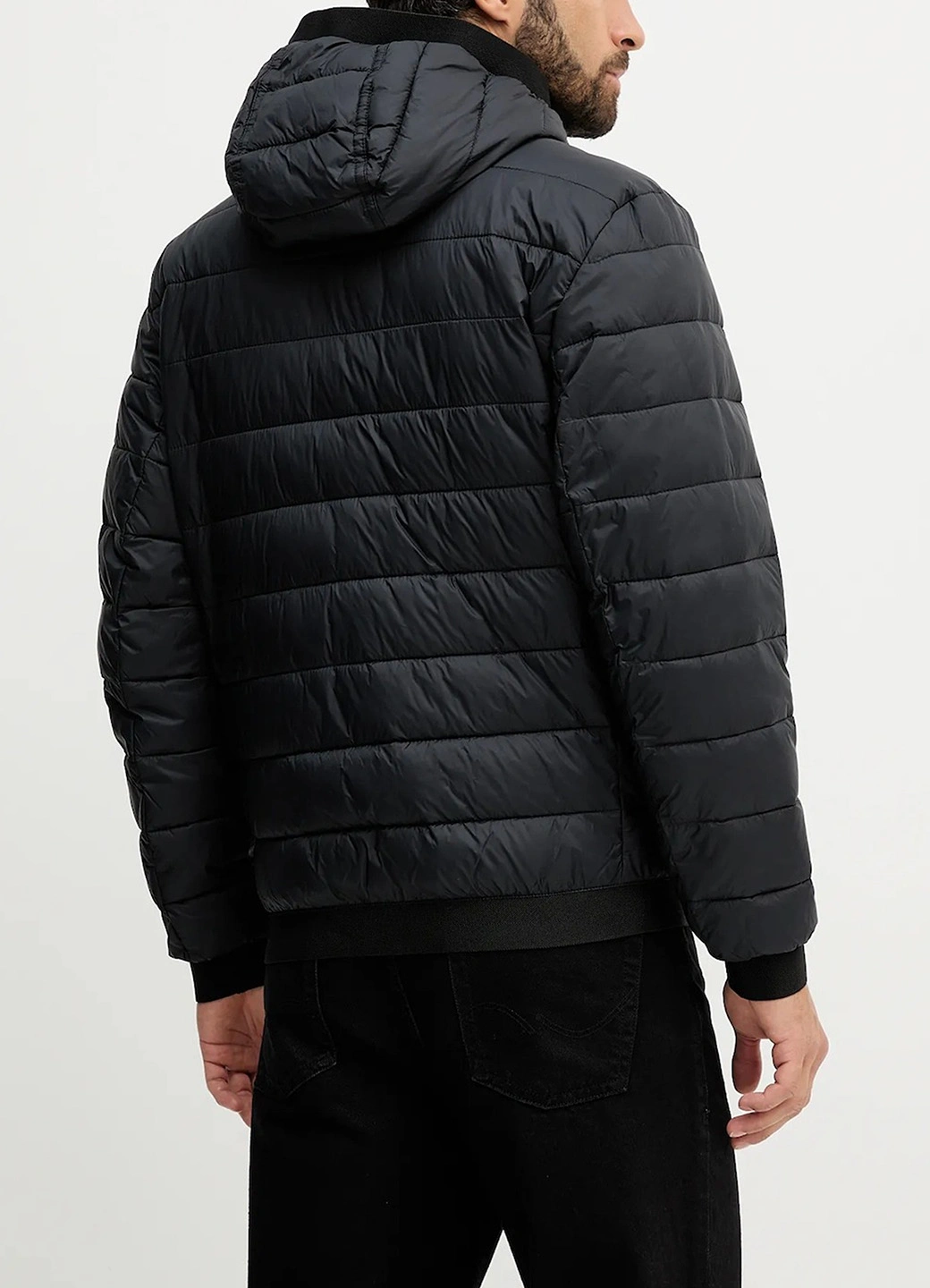 Odenis hooded quilted nylon short jacket with elastic cuffs and waist.