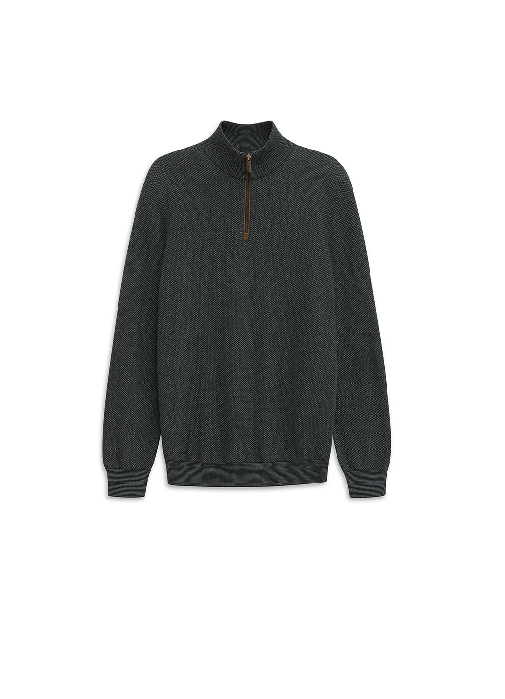 Knitwear.Jaquard pique half zip knitted sweater.55% Cotton, 45% Polyacrylic.