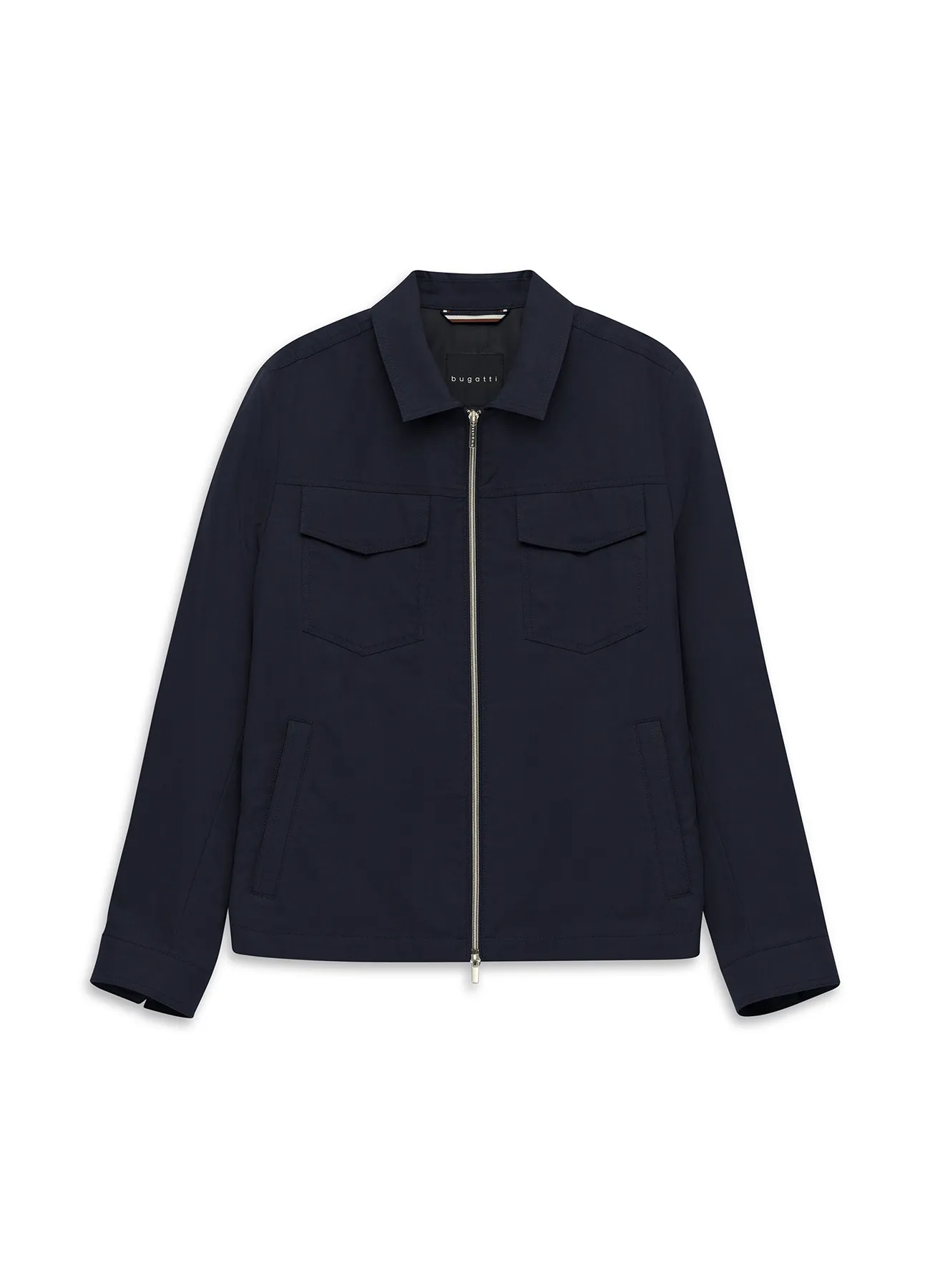 Cotton mix two way full zip shirt jacket with double pockets and side pockets.