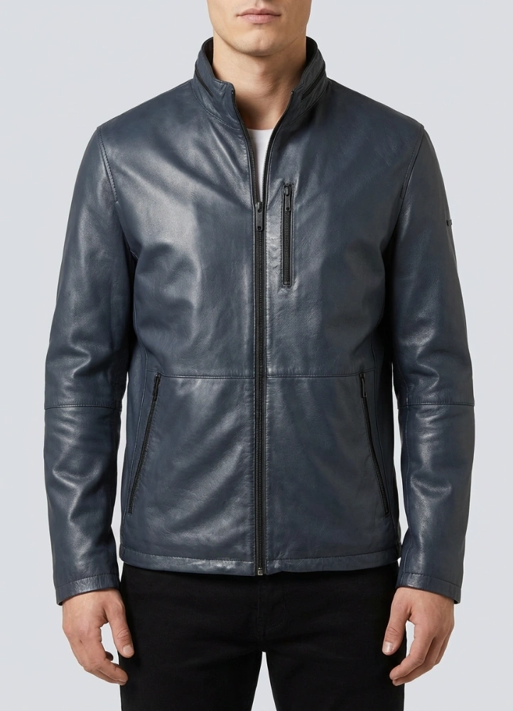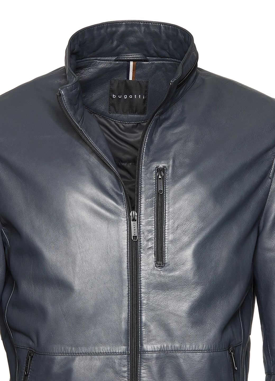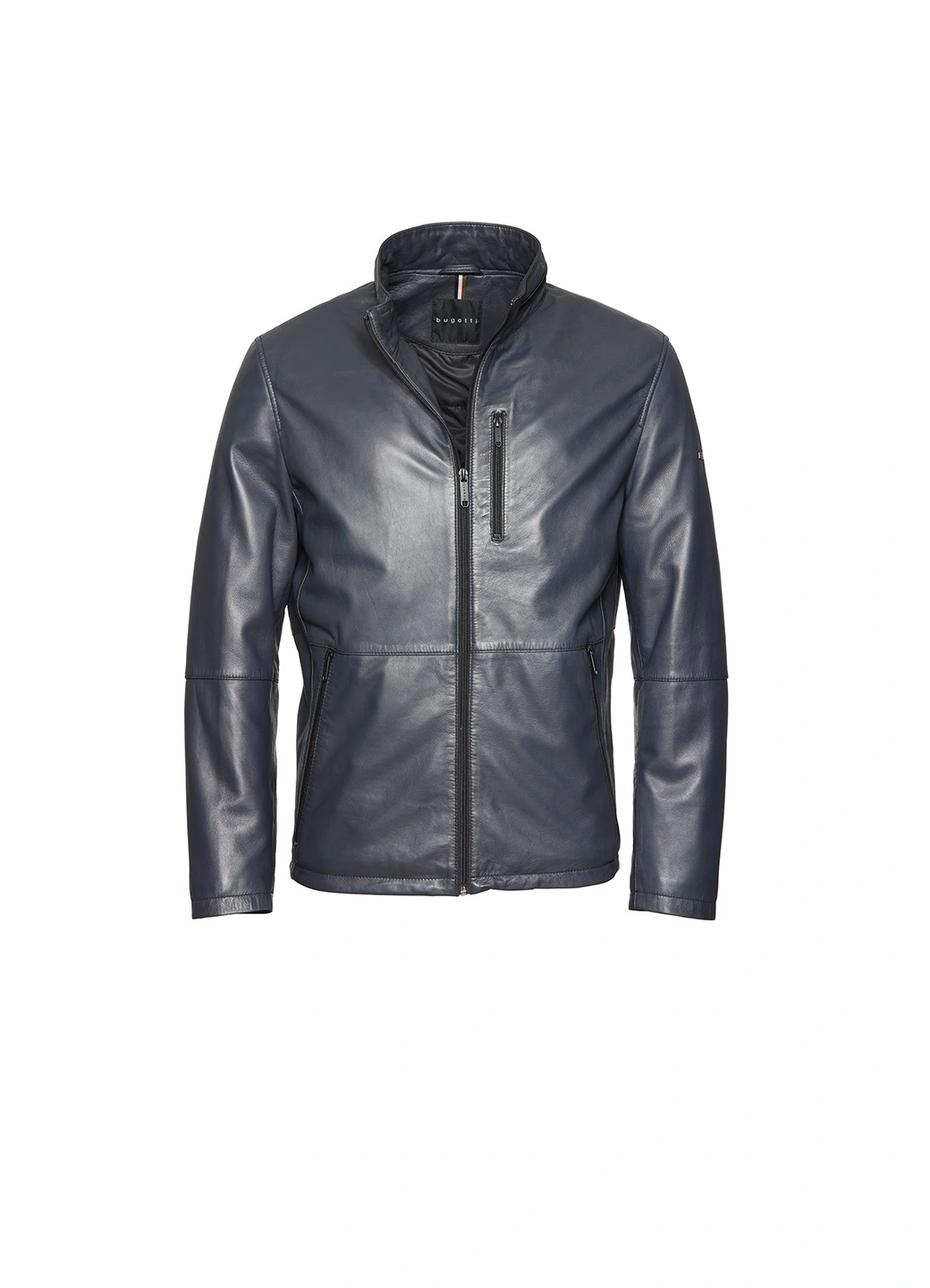 Short Jacket.Lamb leather full zip short jacket with zipped pocket on chest and zipper contrast on collar.100% Lamb Leather.