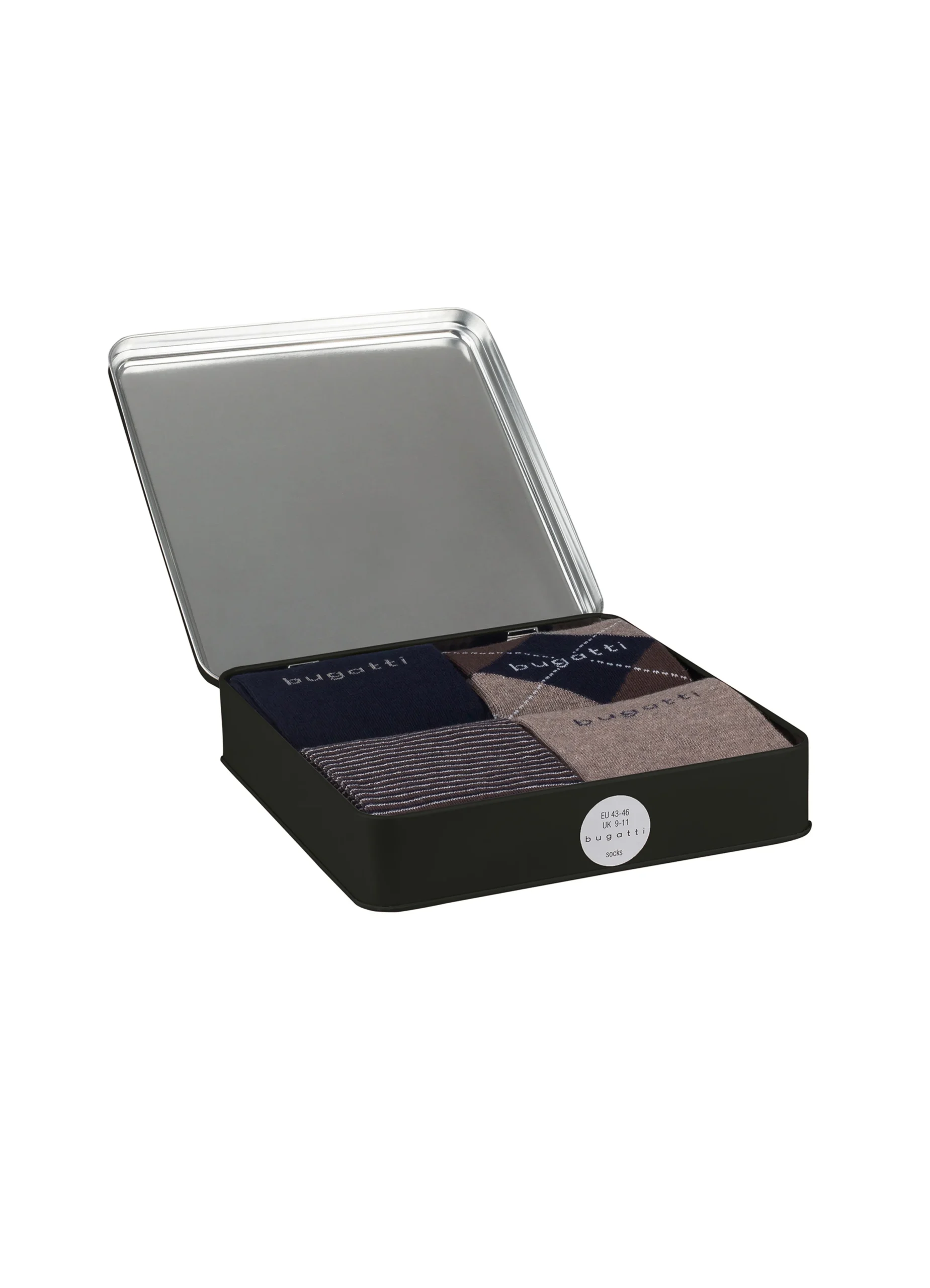 Socks.Socks metal box pack of four socks.