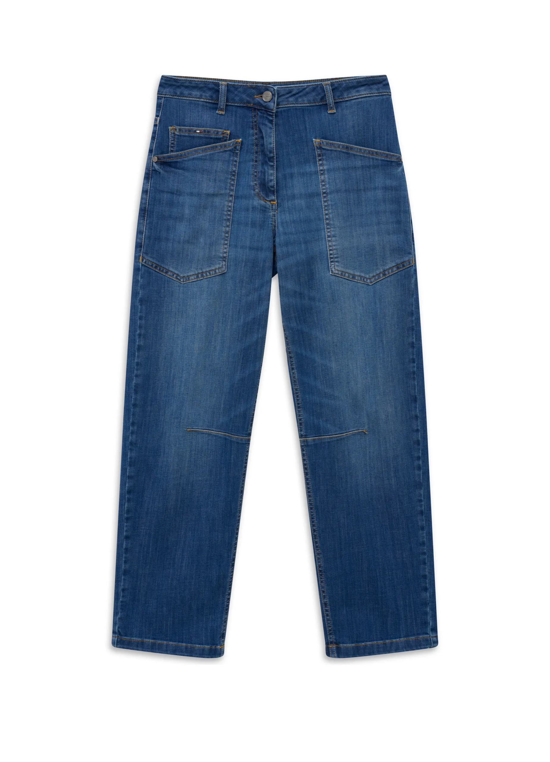 These high-waisted jeans feature a relaxed fit that offers both comfort and effortless style. Designed to flatter the waist while providing a laid-back silhouette through the legs, they create a balanced and modern look. The classic denim finish makes them a versatile everyday essential, perfect for both casual and elevated outfits.