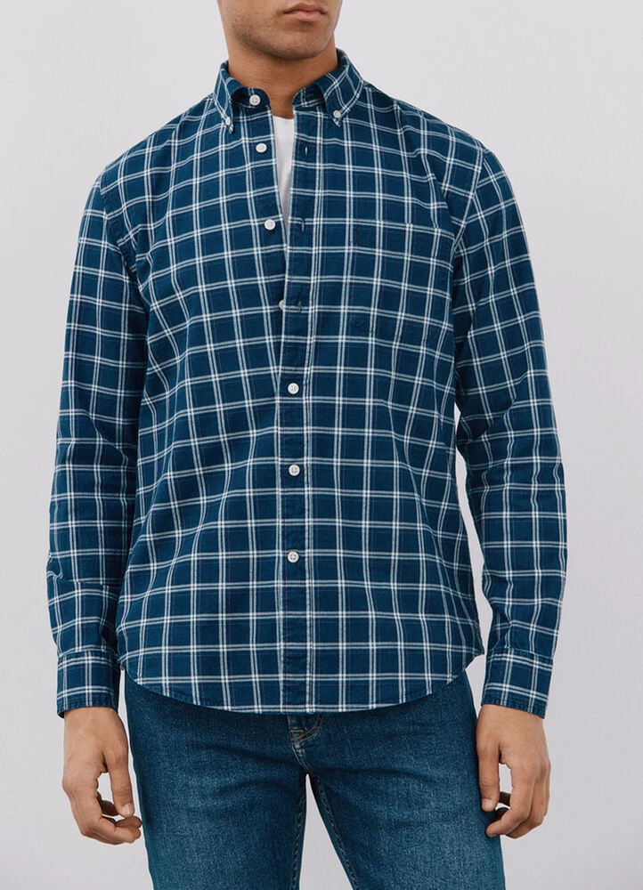 Long sleeve, regular fit, checked shirt with a button down collar, and a chest pocket.