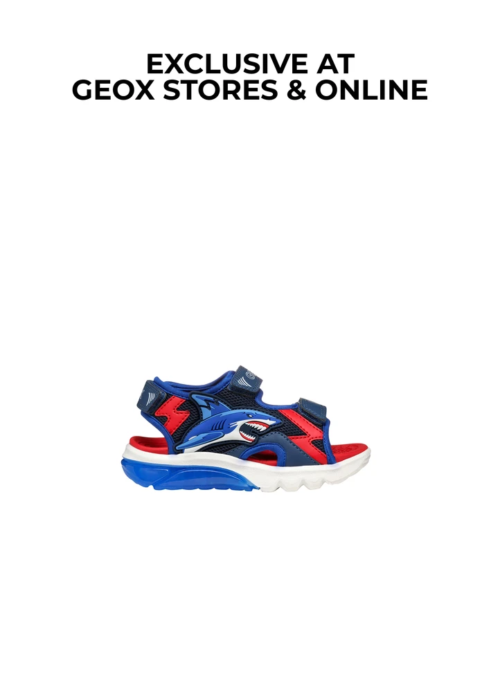 Attractive sandal for boys with a sporty dynamic aesthetic and a series of lights built into the sole. This version of Ciberdron boasts a stylish upper adorned with lively detailing. Crafted from mesh and a leather-effect material, this cushioning piece of footwear includes handy riptape straps for ease of adjustability as well as a comfortable design.