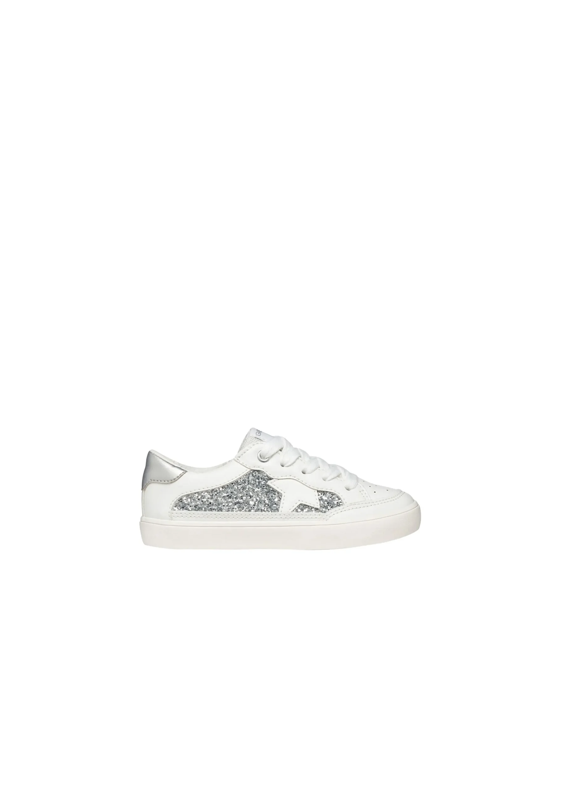 Gisli is a comfortable sneaker for girls crafted from a leather-effect material and featuring fabric inserts and glittery details. This lightweight versatile piece of footwear will be ideal for everyday routine and schooldays.