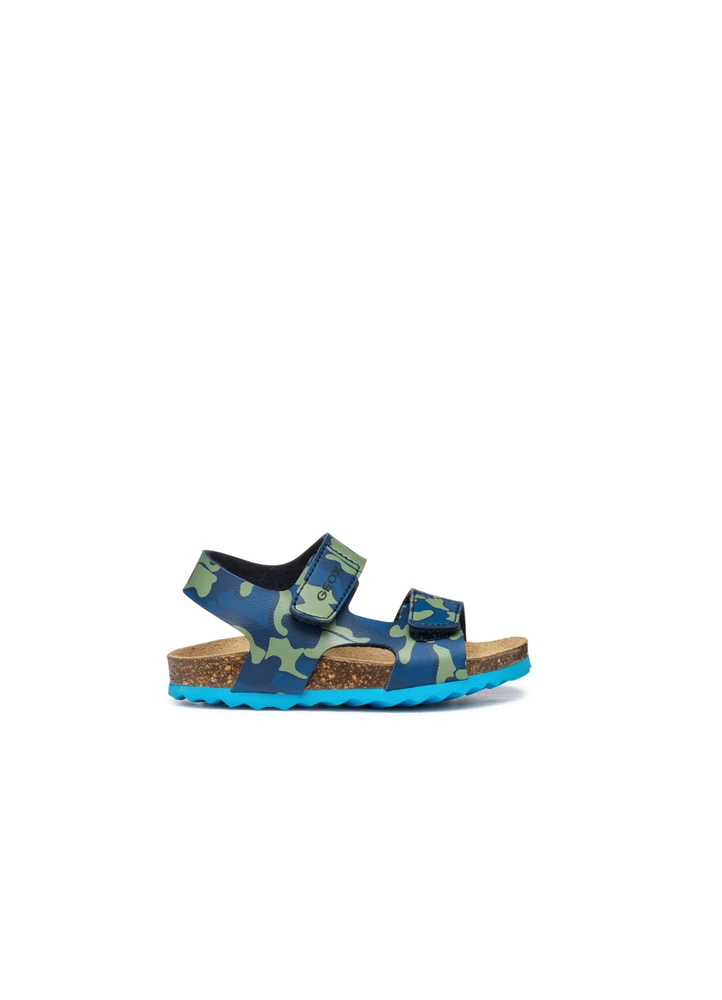 Anatomic breathable sandal for boys with a design that will prove perfect for sporty warm-weather styling. This version of Chalki comes in a navy and deep-sky-blue colour way and boasts a laid-back casual aesthetic, making it perfect for around-town afternoons and holidaytime alike. Crafted from a printed leather-effect material, it fastens with a buckle and adjustable riptape, and ensures perfect wearability.