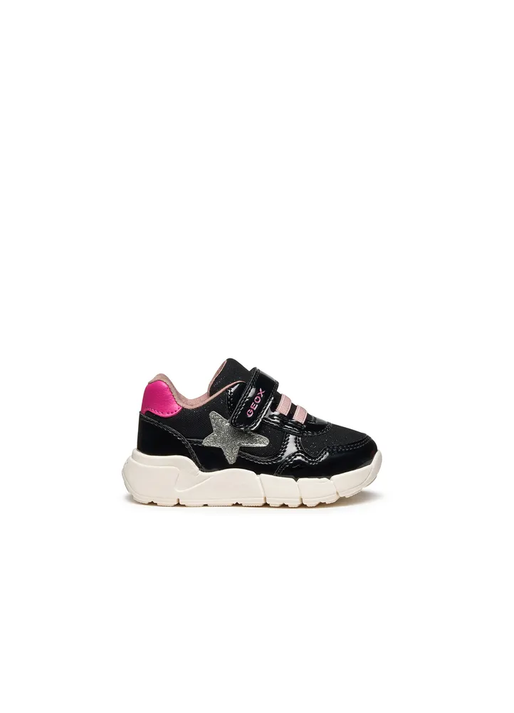 Flexyper Mini is a low-cut sporty-looking sneaker for baby girls designed to support the natural movements of toddlers’ feet. Crafted from a leather-effect material and shiny fabric, it delivers comfort and an easy foot entry with a design that suits playtime and day-to-day activities alike.