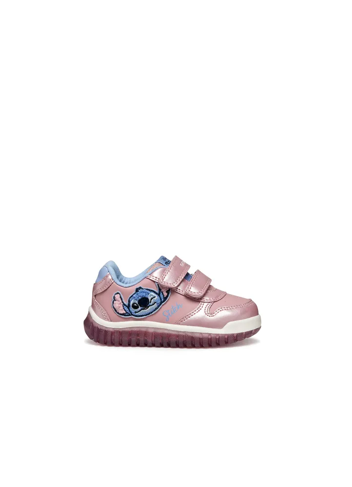 LIGHTYLOO GIRL Lightyloo is a sporty cheerful-looking sneaker for baby girls that takes its cues from the world of Disney. It has been crafted from a pearlescent leather-effect material and fitted with lights on the sole which exude energy and are bound to put little adventurers in a good mood. Leather upper
