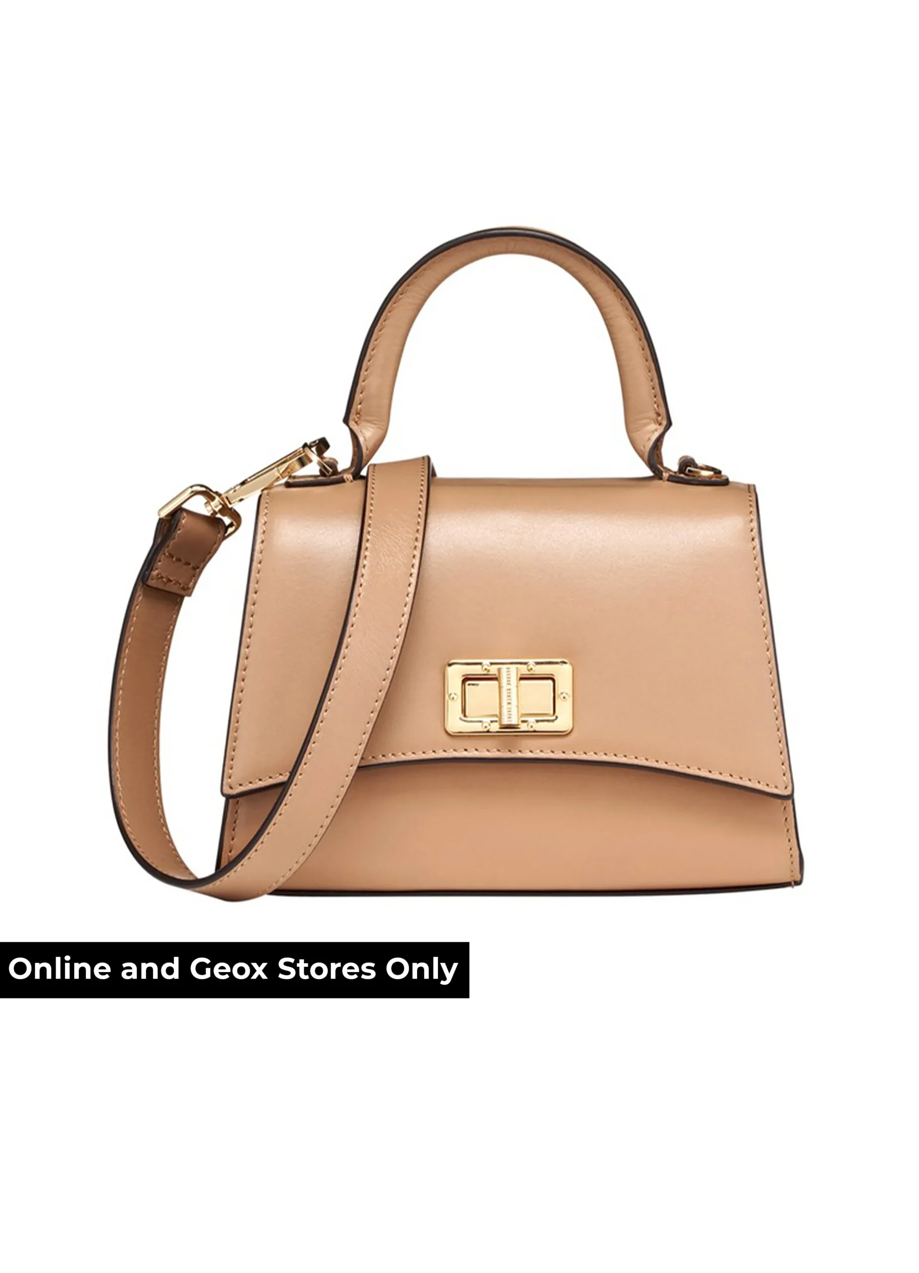 Women’s mini bag with a practical shoulder strap, feminine style and contemporary look. Featuring a flap and twist closure, it is made from smooth leather.