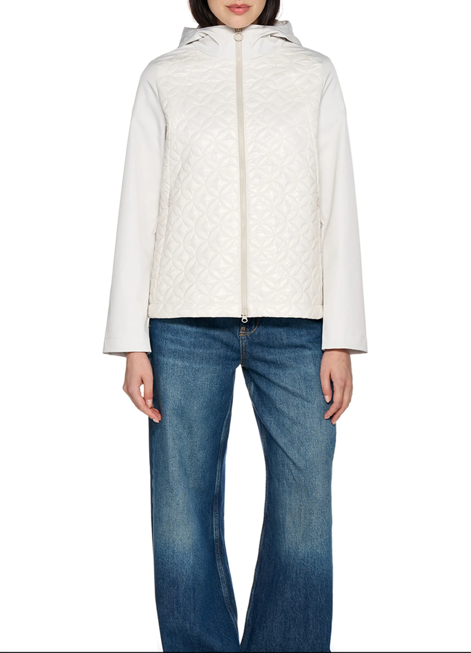 Spherica™ is a comfortable and breathable women’s short parka with a contemporary and feminine design, ideal for the start of the season. The hood and sleeves are made of soft shell fabric, while the body is made of shiny nylon quilted with very warm but lightweight padding.