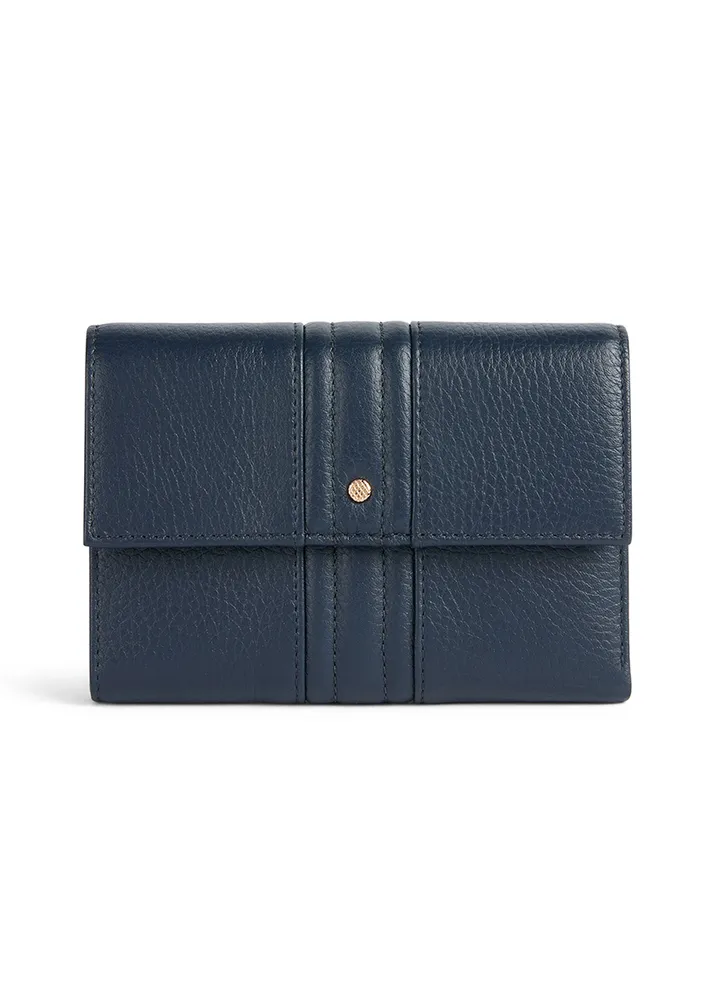 Fold-over wallet for women with an up-to-date classic aesthetic. Crafted from supple hardwearing tumbled leather, it has been fitted with a coin compartment and multiple card slots so you can safely stash all your valuables away.