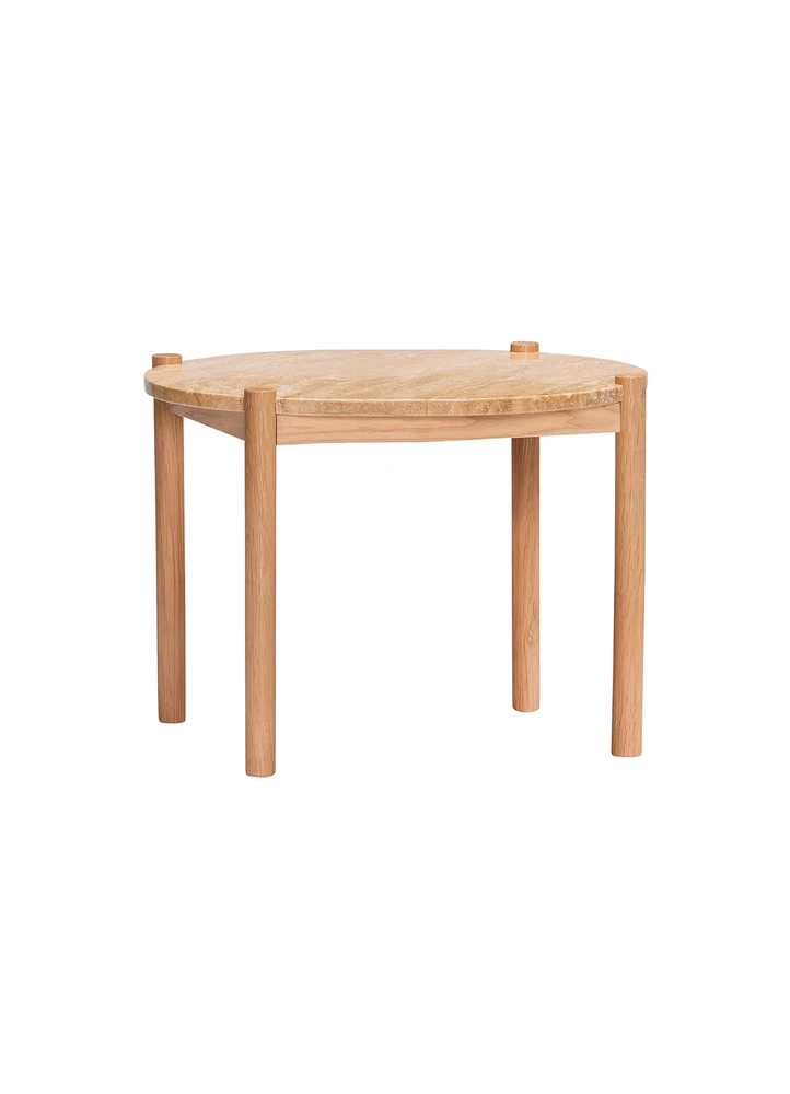 Trava Coffee Table, Oak wood/ Travertine, 60x60xh44cm.