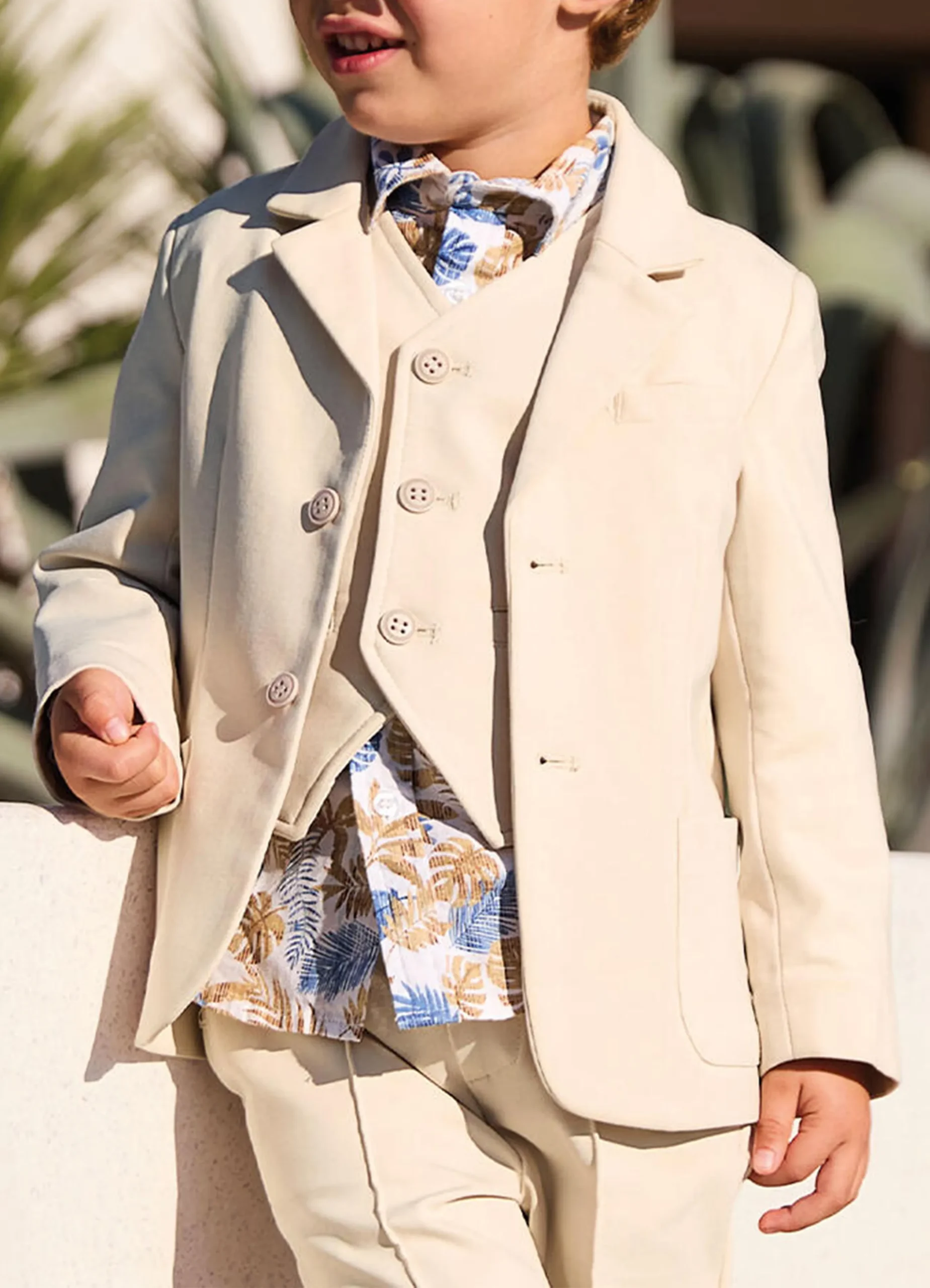 Canvas with an all-over pattern. External button on the sleeve to create a short sleeve.