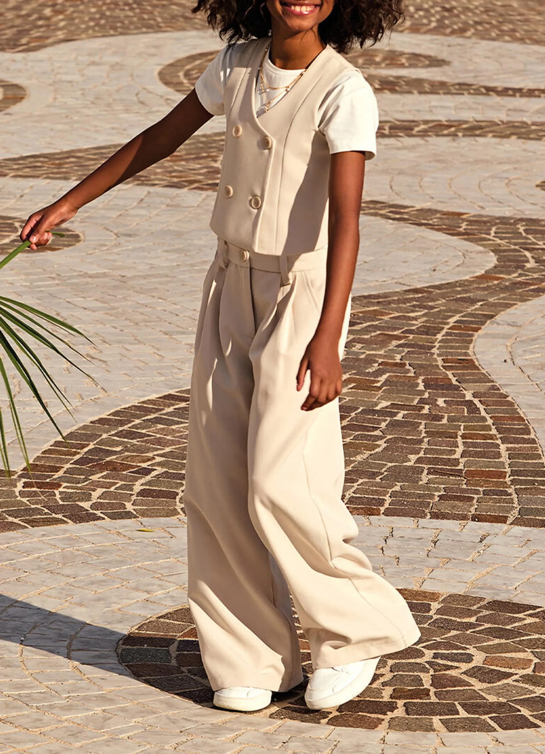 iDO girls’ long pants, ideal for formal occasions, made from stretch twill with a satin lining. Zip and button fastening. Adjustable waist with internal elasticated drawstring.
