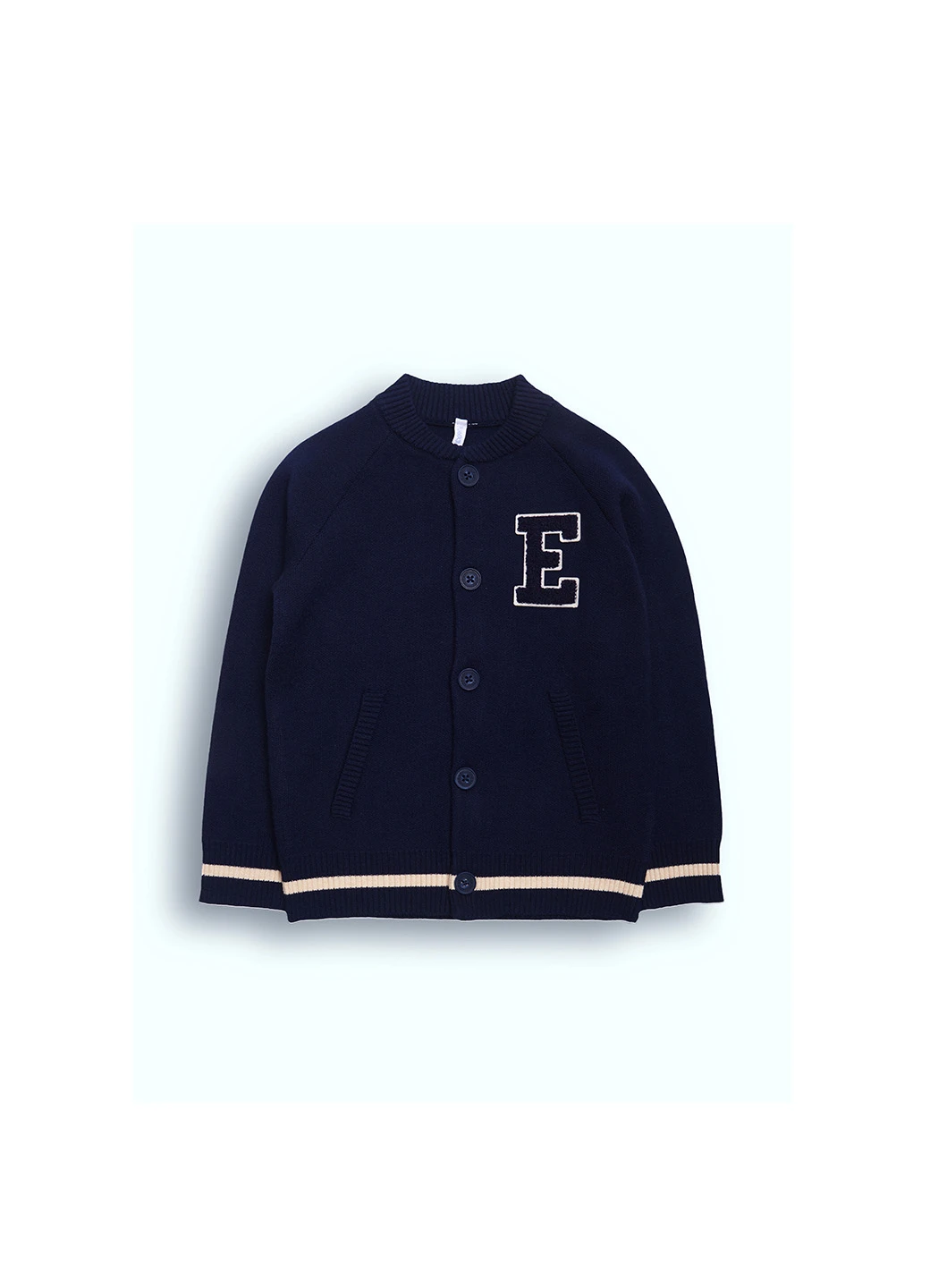 Knitwear Cardigan.Knitted full buttoned cardigan with E badge.53% Viscose, 29% Polyester, 18% Polyamide.