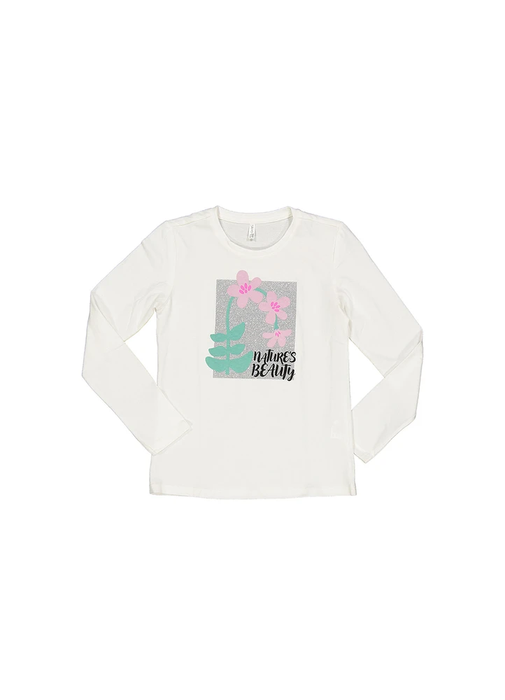 T-shirt LS.Nature’s beauty with flowers lurex printed t-shirt.100% Cotton.