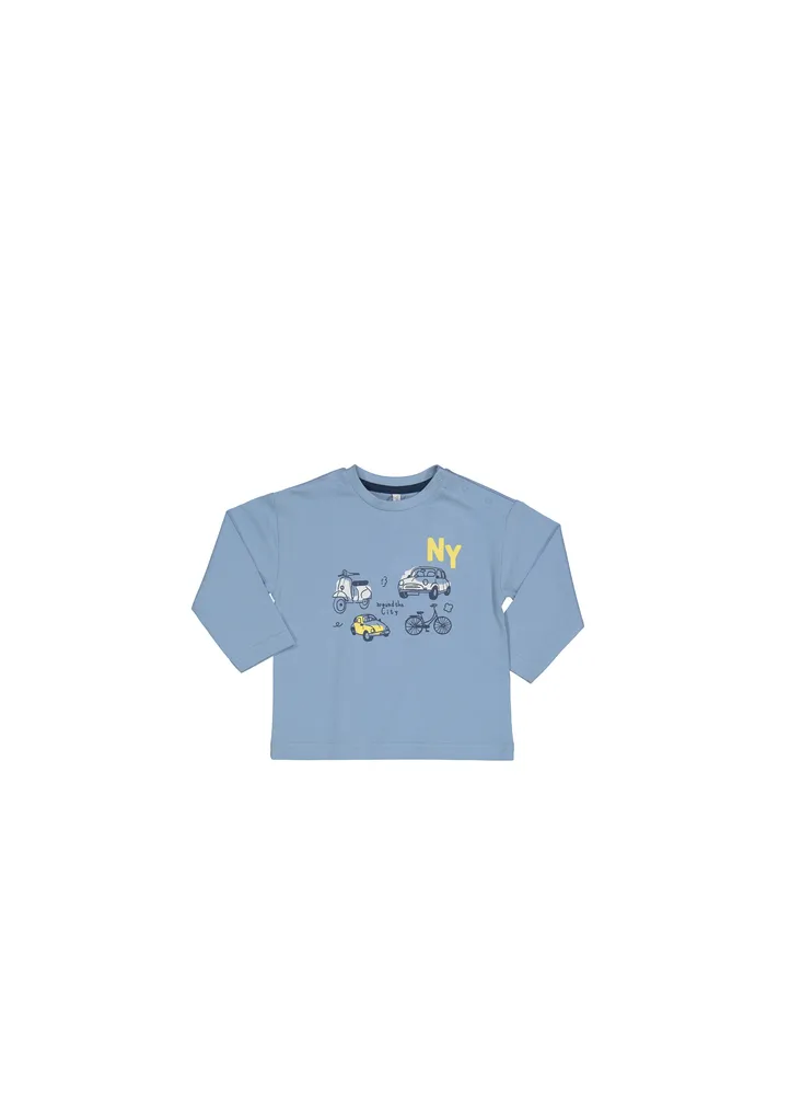 NY around the city with vehicles printed t-shirt.