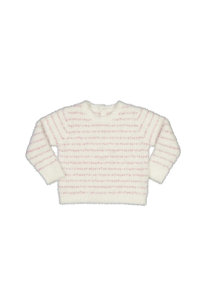 Knitwear.Knitted striped fuzzy sweater.65% Polyamide, 35% Polyester.