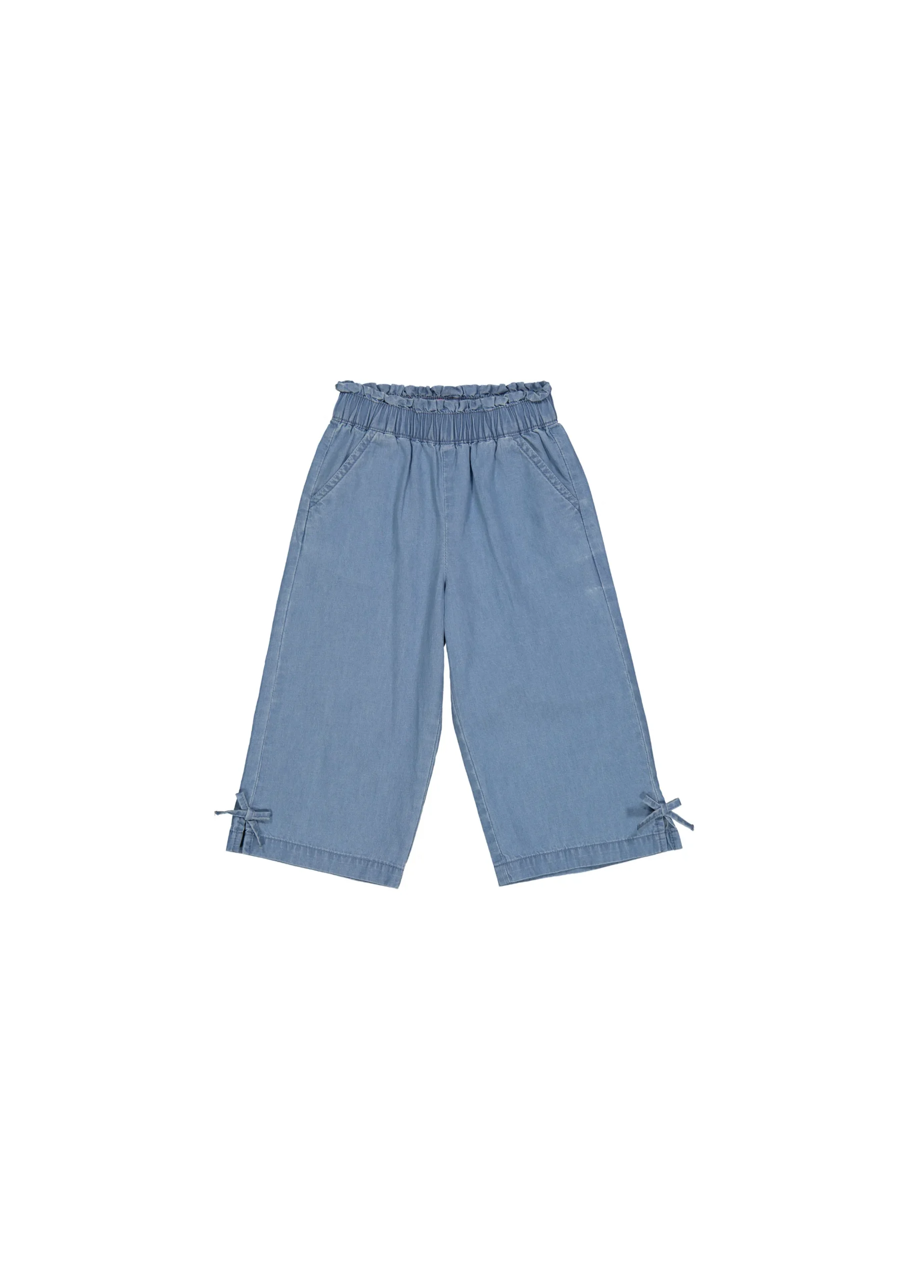Loose Pants.Wide leg loose tencel pants with elastic waist and bows on bottom.100% Cotton.