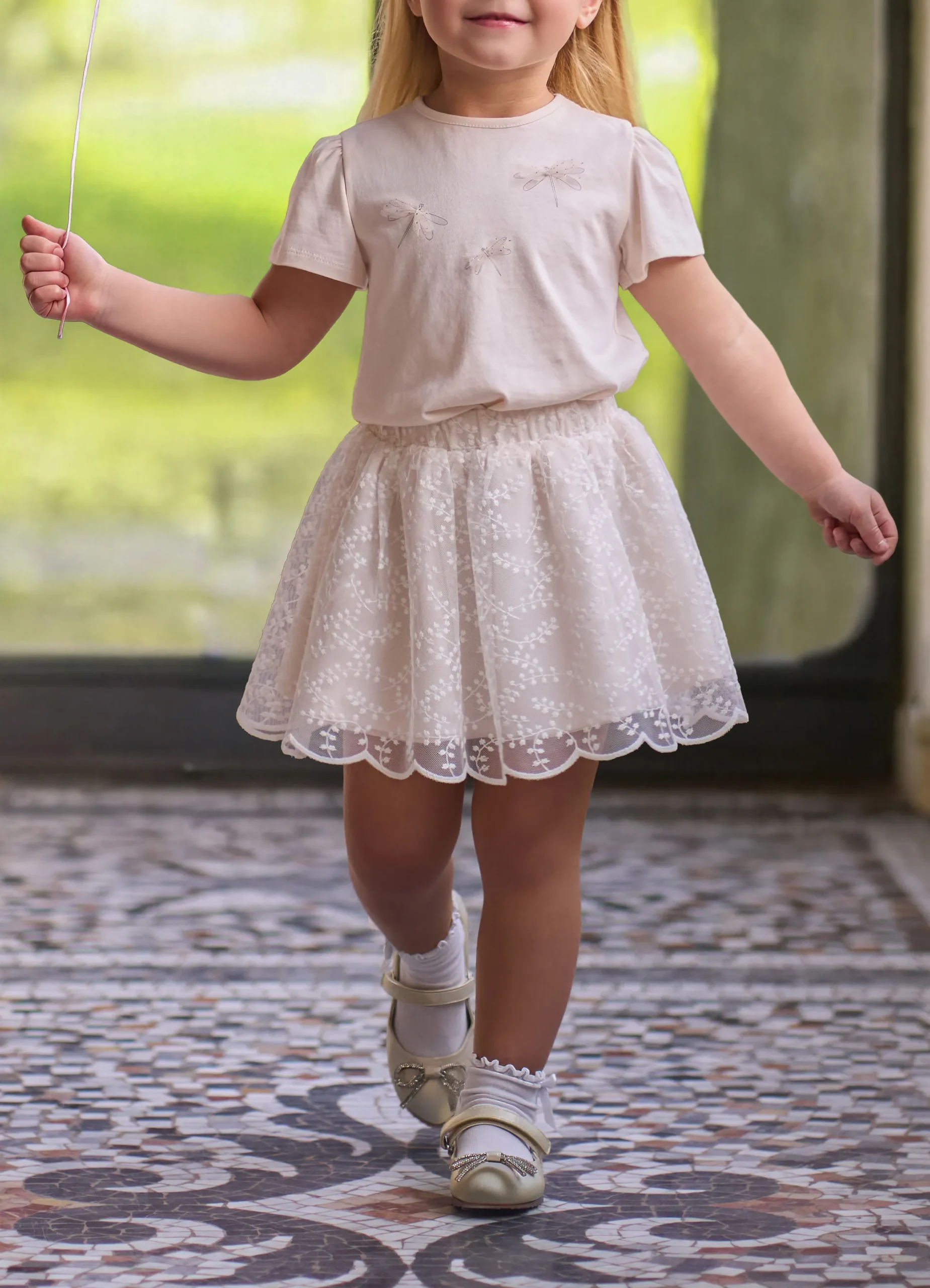 Mini crochet embroidery net skirt.