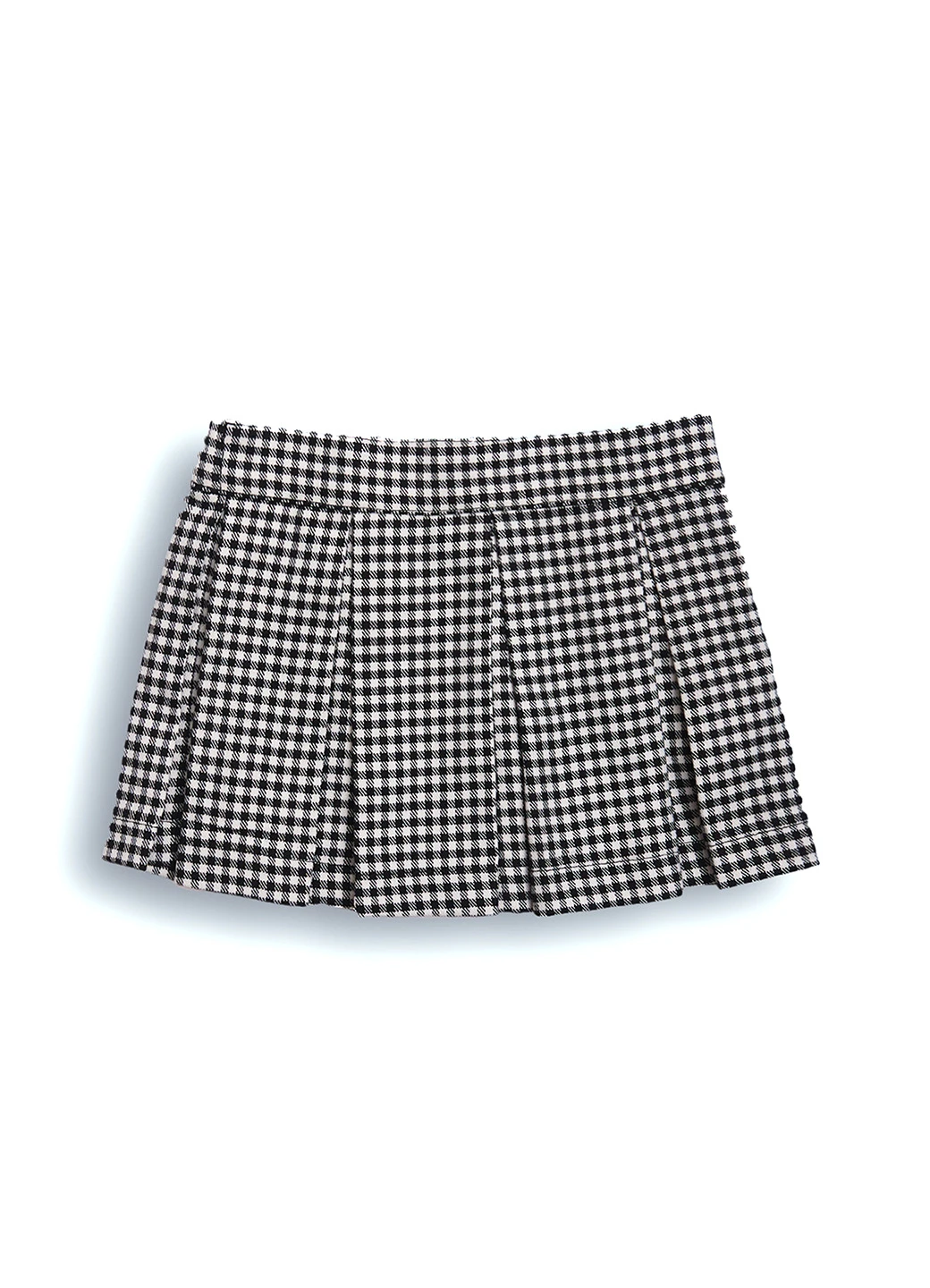 Skirt.Checked pleated mini skirt.63% Polyester, 34% Viscose, 3% Elastane.