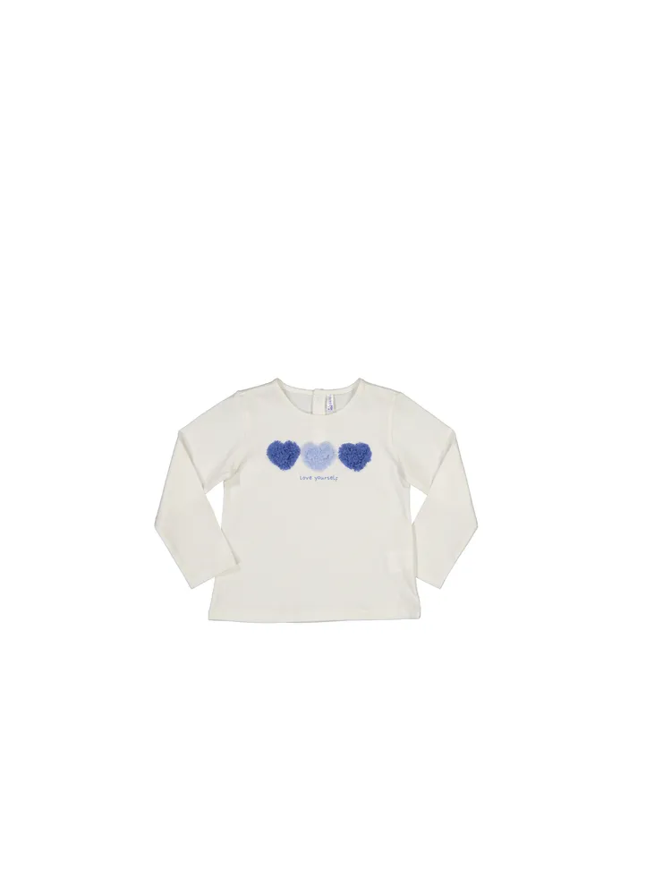 Three blue hearts love yourself printed t-shirt.