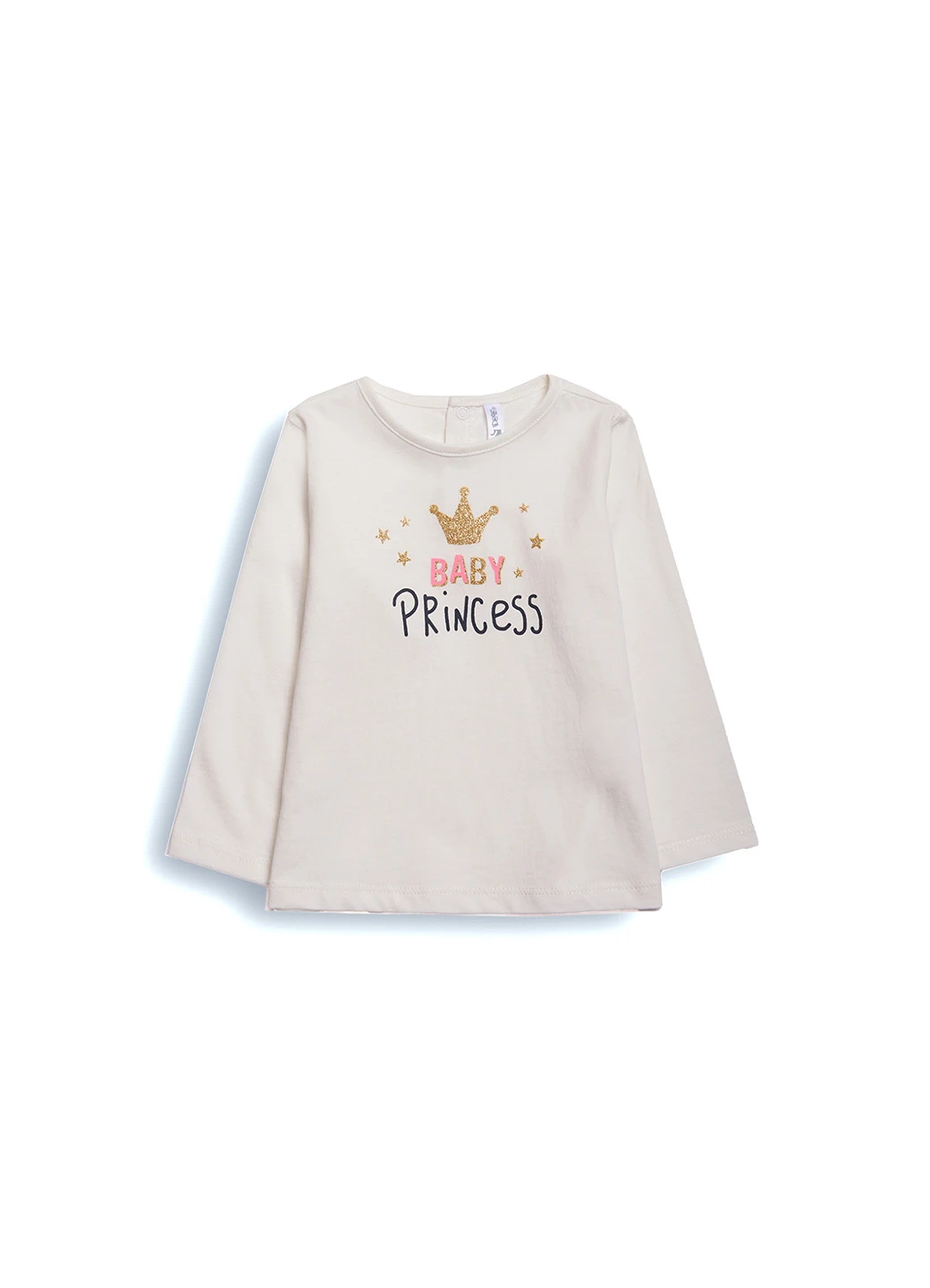 T-shirt LS.Baby princess with lurex crown printed t-shirt.100% Cotton.