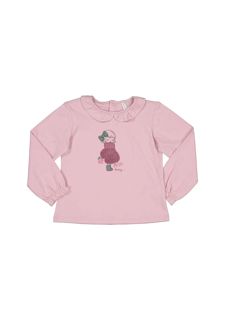 T-shirt LS.Miss berry with girl wearing sweater printed t-shirt and claudine collar.100% Cotton.