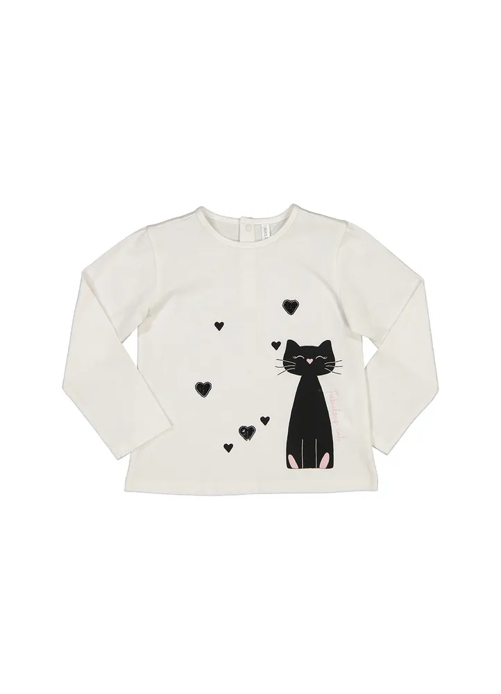 T-shirt LS.Cat with hearts printed t-shirt.100% Cotton.