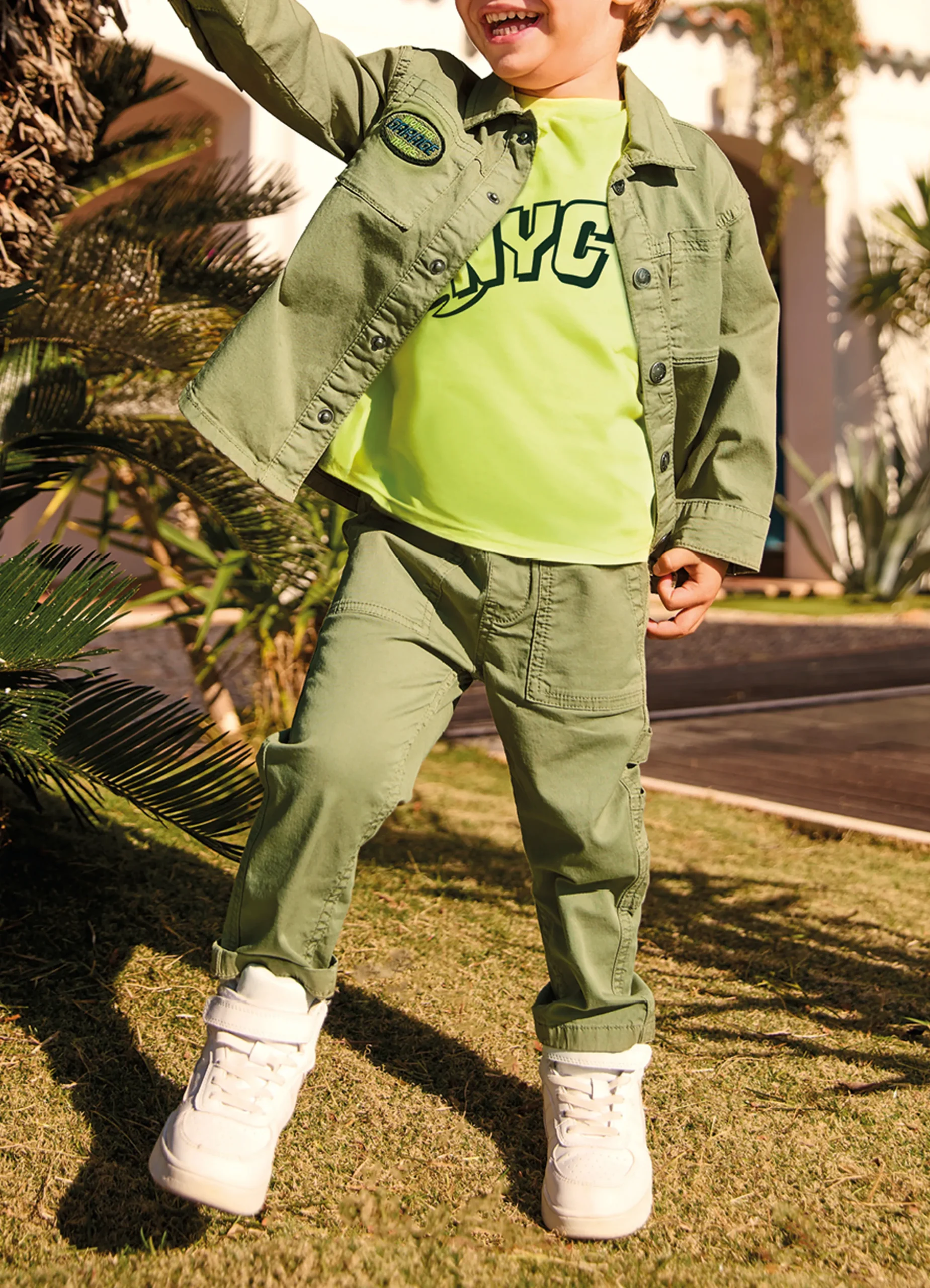 Boys’ long trousers made from stretch cotton twill. Elasticated waistband with drawstring. Regular fit. Adjustable waist with internal elasticated drawstring.