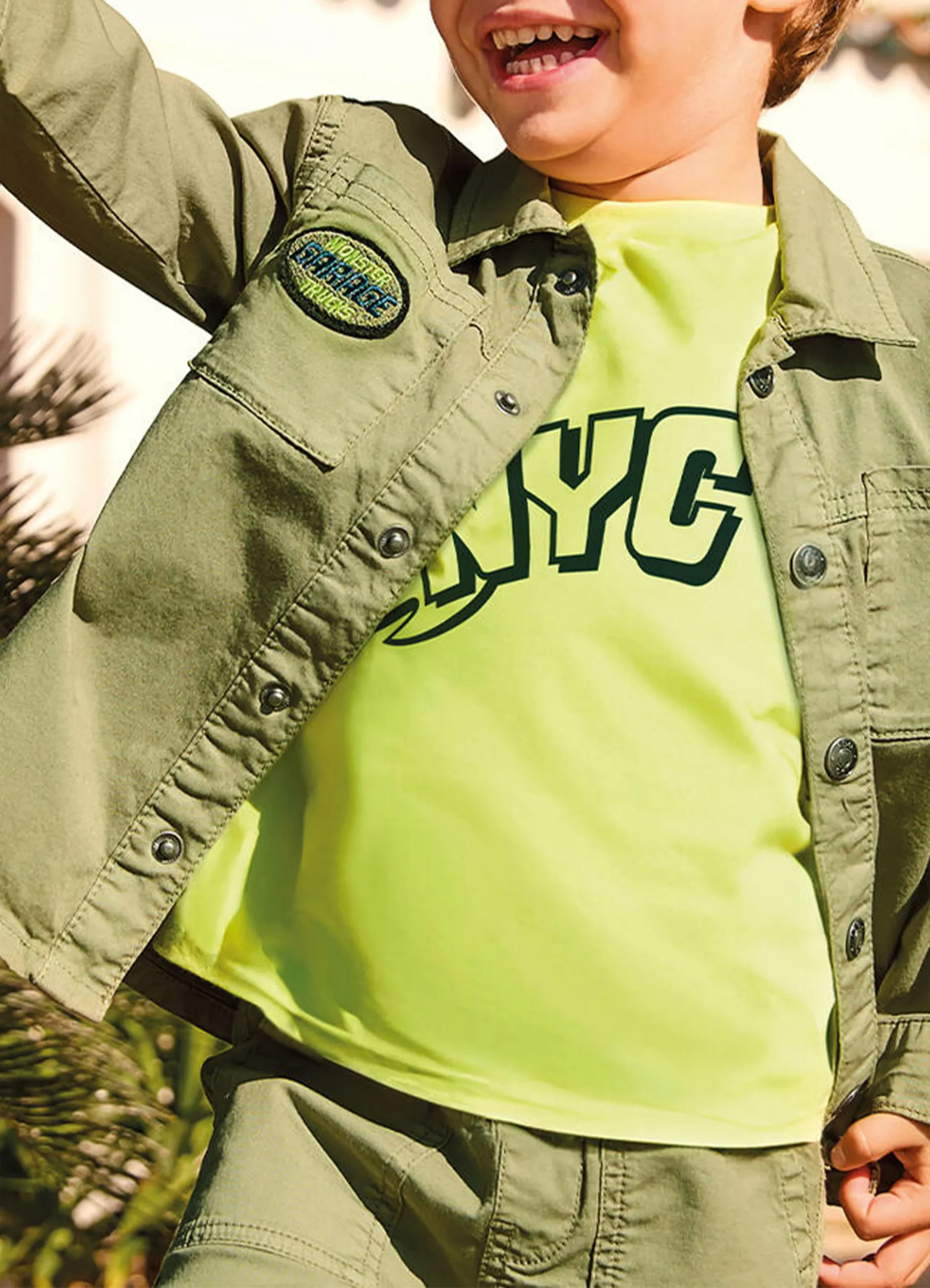 Shirt jacket with double chest pockets and monster garage badges.