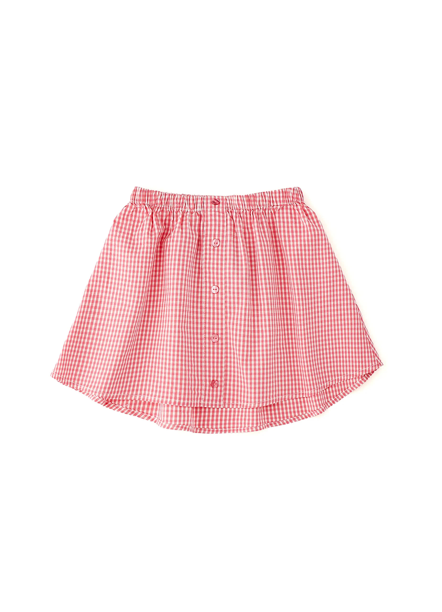 iDO girls’ skirt with check pattern and buttons down the front. Elasticated waist. Above-the-knee length. Made from lightweight stretch cotton poplin.