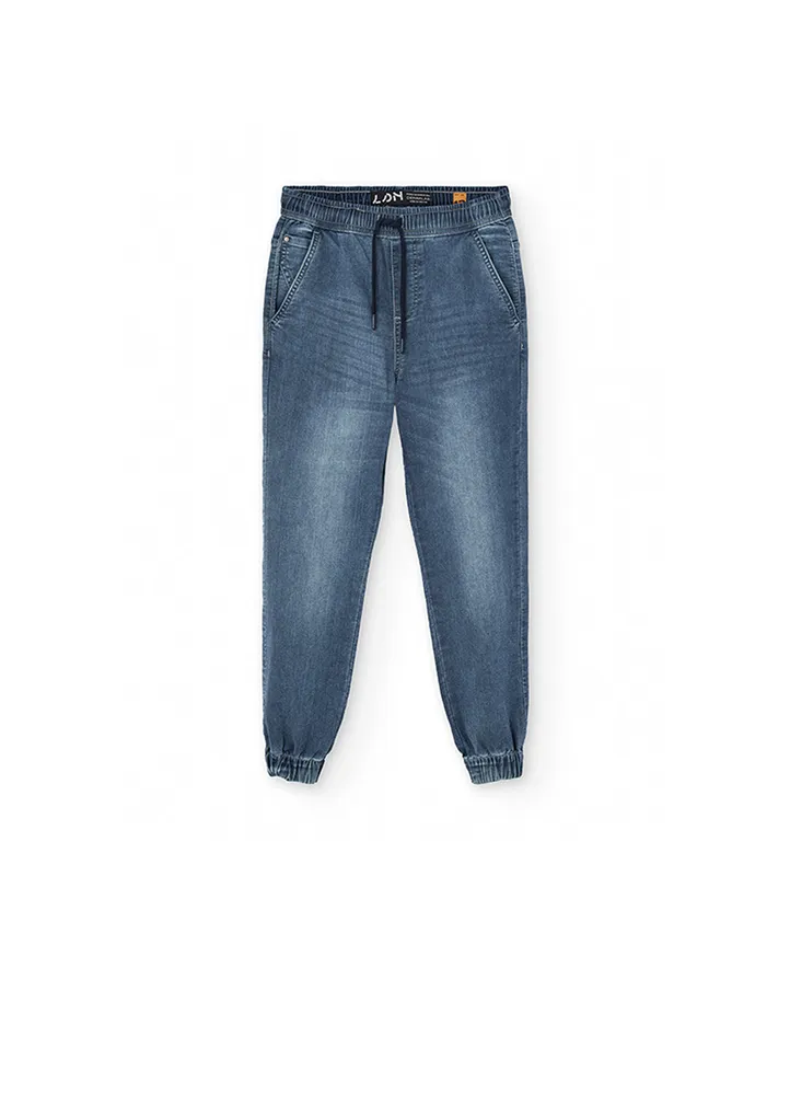 Jeans.Drawstring washed denim jeans with cuffed bottom.80% Cotton, 18% Polyester, 2% Elastane.