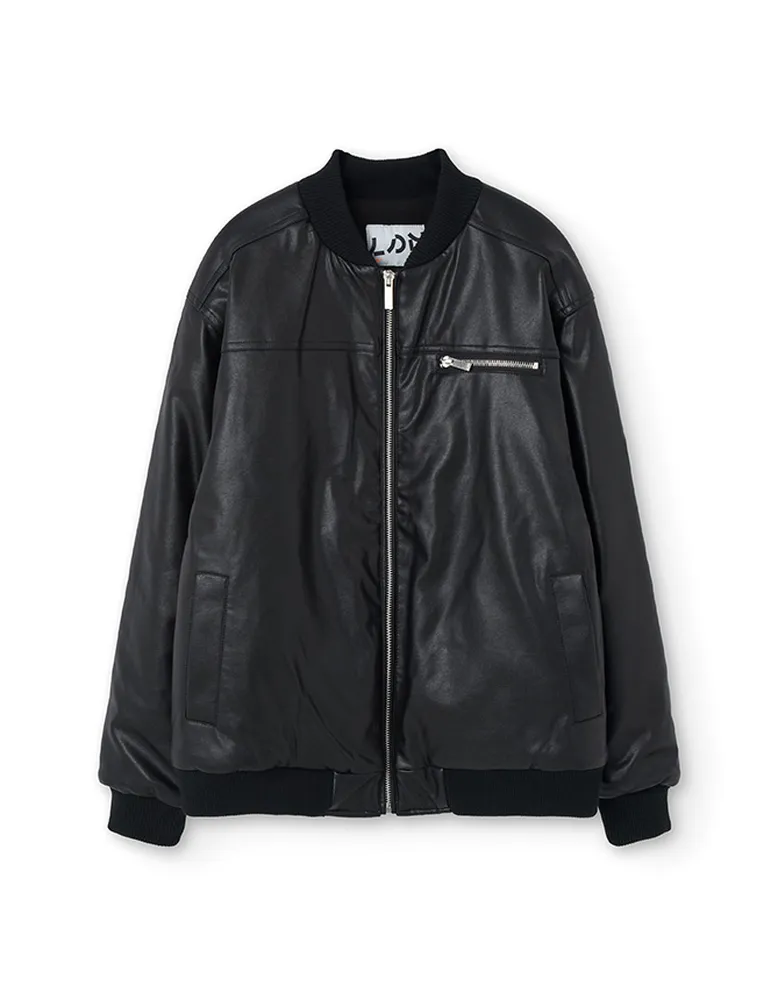 Short Jacket .Baseball PU full zip short jacket with elastic hem and collar and fleece lining.100% Polyurethane.