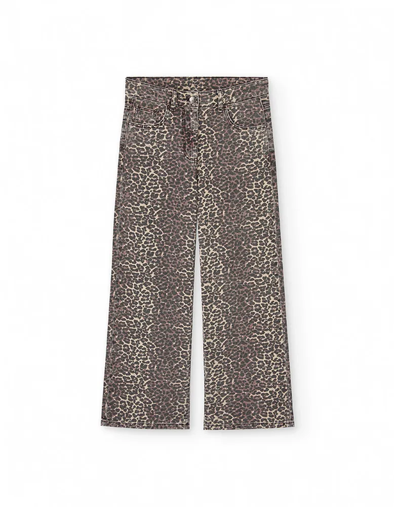 Jeans.Leopard wide leg jeans.100% Cotton.