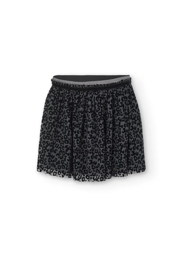Skirt.Leopard tulle mini pleated skirt.100% Polyester.